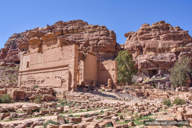 Qasr al-Bomt Temple(25BC-25AD) : 페트라에서 가장 오래된 건물이다. '파라오의 딸의 신전'이라는 의미를 가지고 있는데 신전으로 수로를 연결하는 방법을 고안해내는 기술자에게 공주를 시집보내겠다고 했다는 지역 전설에서 이름을 따왔다고 한다. 실제로 신전 주변에는 수로를 만들려고 했던 흔적이 다수 발굴됐다고.