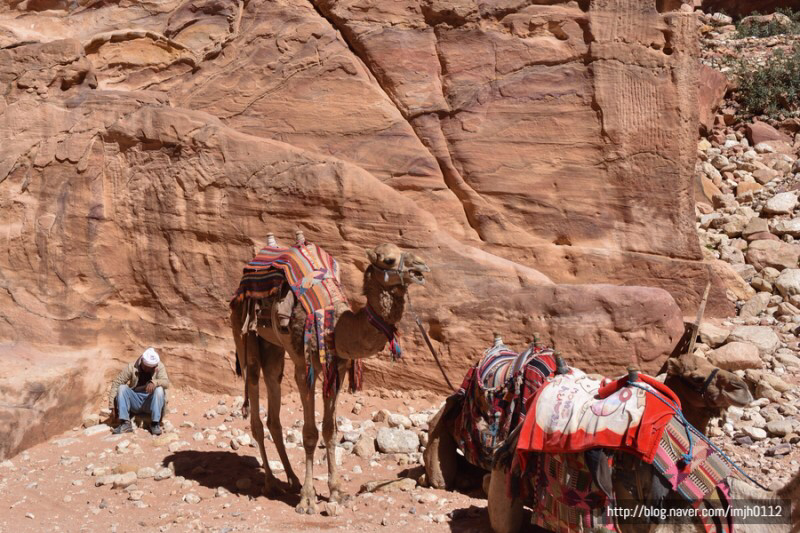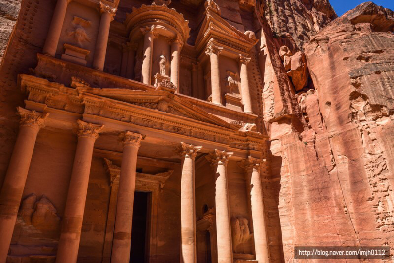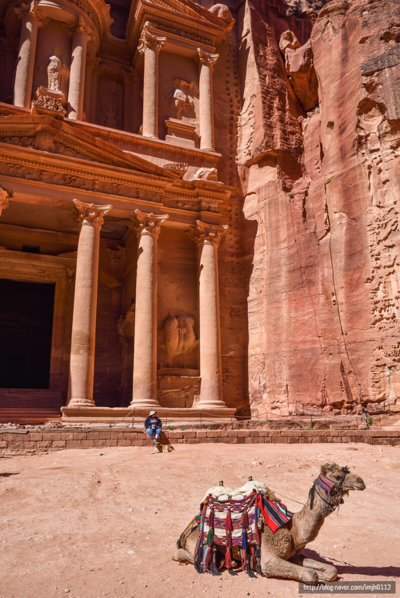 알 카즈네는 현존하는 페트라 건축물 중에서 보존 상태가 가장 뛰어나다. 헬레니즘 양식으로 조각된 건축물인데 다른 건축물들에 비해 특징적으로 세부 디테일이 많이 남아있는 편이다. 아무래도 지형적으로 모든 면이 계곡으로 둘러싸여 있기 때문에 풍화가 조금 덜하지 않았을까. 보물창고라는 이름과 달리 알카즈네의 내부는 텅 비어있었다고 하는데 조사 결과, 나바테아 왕 아테라스 3세의 무덤으로 추정하고 있다. 알 카즈네의 위용과 아름다움에 반해 넋 놓고 하루 종일이라도 수다를 떨며 있어도 좋겠지만 이따가 나이트 페트라 때도 다시 올 것이니, 이만 발을 옮기기로 하자.