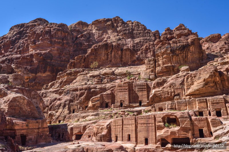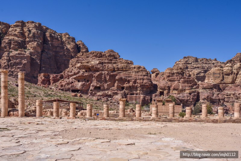 알 카즈네를 지나 더 안쪽으로 들어서면 본격적으로 넓은 구역이 등장하는데 나바테아 왕실의 무덤 군과 높은 제단으로 오르는 길, 그리고 고대 유적에 가면 항상 볼 수 있는 원형극장이 나온다. 이 유적군은 상당히 다양한 시대의 모습을 하고 있는데 왕실 무덤 군은 고대 아시리아 양식과 유사하다고 추정하고 있고, 원형극장은 로마 양식이다. 무덤들에 따라 다양한 건축양식이 드러나는 것을 통해 페트라가 어떠한 문화권의 영향을 받아왔는지 짐작할 수 있다. 아직 발굴 작업이 덜 끝난 것인지, 건물의 일부는 여전히 땅 속에 묻혀있는 것 같았다.