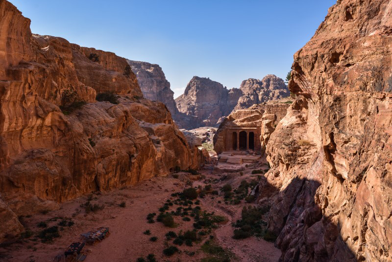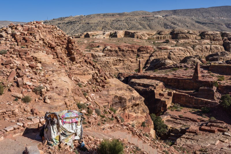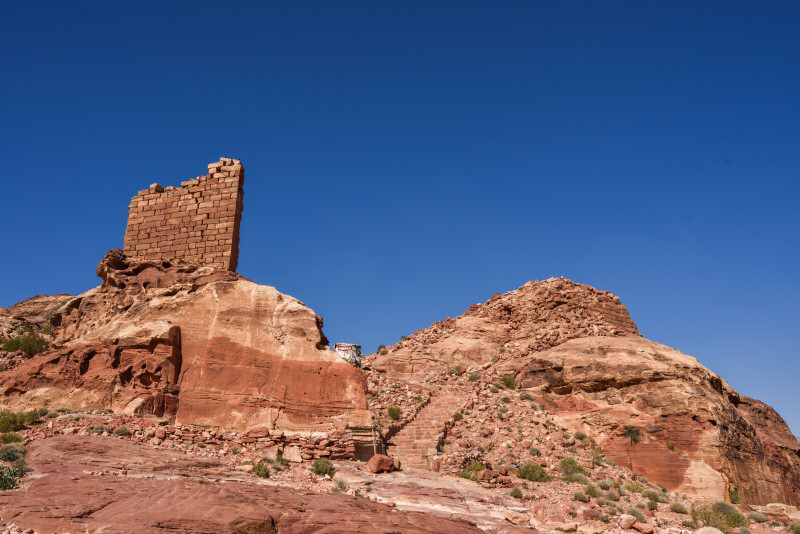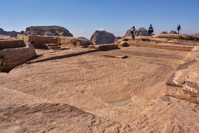 한참을 산을 올라가면 최정상에 고대 페트라가 생기기 이전부터 원주민들이 제사를 지내던 제단 유적이 등장한다. 확실히 제단이 있을 법한 지형이었는데, 발밑으로 도시 유적이 한눈에 들어오고 심지어 산 너머로 와디무사까지 보였다. 지금은 바위 위에 제단이 있었다는 네모난 흔적뿐이 안 남아있지만, 주변의 풍경만으로도 이곳의 신성함이 느껴지는 것 같았다. 구름 한 점 없이 파란 하늘은 손을 뻗으면 마치 닿을 것만 같았다.