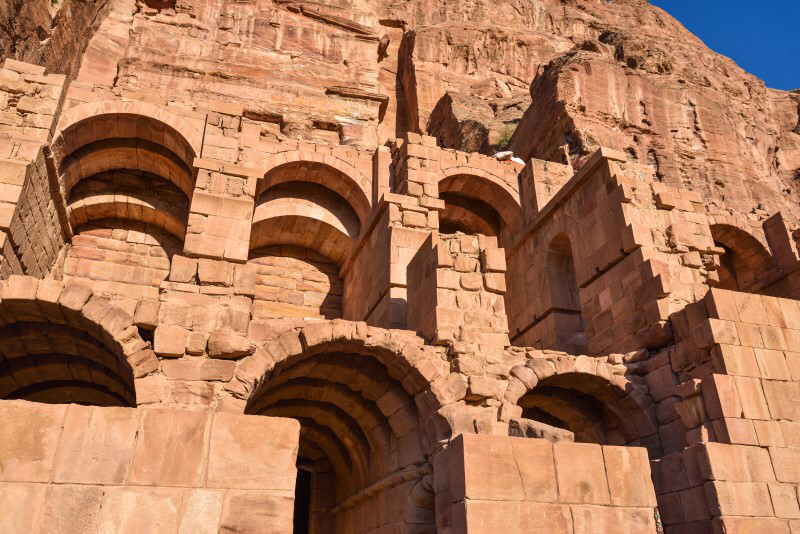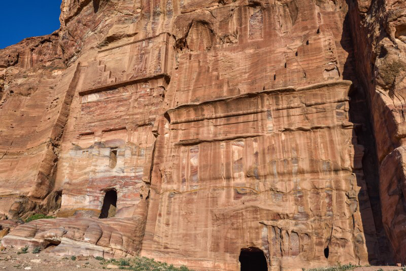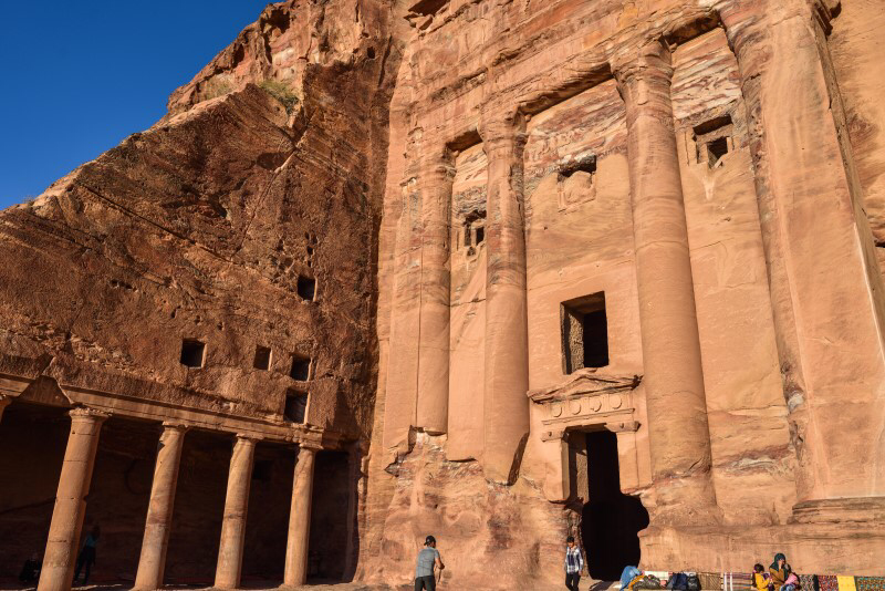 마지막으로 페트라를 떠나기 전 거대한 왕실 무덤들을 찾아갔다. 파사드가 공기 중에 개방되어 있어서 마치 녹아내린 듯한 모양으로 풍화가 꽤 심하게 진행되어 있지만 그 규모만큼은 어마어마하다. 왕실의 무덤인지는 확실하게 알 수 없지만 그 규모로 보아 페트라 사회의 상류층 가족무덤으로 추측하고 있다. 무덤의 주변으로는 인공수로의 흔적이 발굴됐다는데 수로를 이용해서 무덤 사이로 인공폭포를 조성했고 산 자들의 도시로 물을 공급했으리라 추측하고 있다. 하지만 설명만으로는 사실 상상하기가 쉽지 않다. 지금은 이렇게도 메마른 사막일 뿐이니. 화려했던 고대 도시와 너무나도 황량한 현재의 모습이 쉽사리 매치되지 않는 것이 왠지 조금은 슬픈 마음이 들었다.