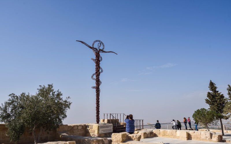 누보산 정상에는 수도원 유적들이 발견되는 현재는 발견된 수도원의 유적지를 보존하며 계속 교회의 역할을 할 수 있게 만들어놓은 성모 성당이 산 정상에 있다. 성모 성당의 정문은 모세가 가나안을 바라봤다는 방향을 향하고 있으며 그 끝자락에는 뱀이 십자가 조각을 감싸 오르는 형태의 조형물이 설치되어 이곳이 모세가 서있었던 자리임을 표시하고 있다. 그 옆의 안내판에는 이스라엘 방향으로 어떤 도시들을 볼 수 있는지 표시되어 있다. 수십 년간 찾아 헤맸지만 도달하지 못한 그곳을 발견한 모세의 심정이 어땠을까, 또 자신은 그곳에 갈 수 없다는 것을 직감한 선지자의 기분이 어땠을까, 생각하니 뭔가 가슴이 먹먹해졌다. 막상 가면 별 거 없을 줄 알았는데, 비록 가톨릭 신자는 아니었지만 그 느낌이 전해지는 것 같아 굉장히 인상적이었다.