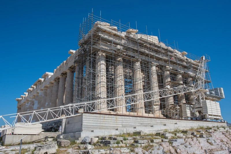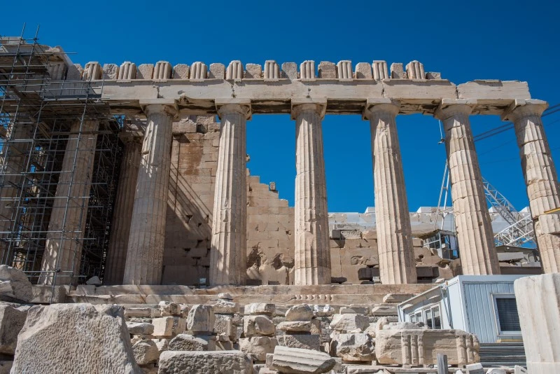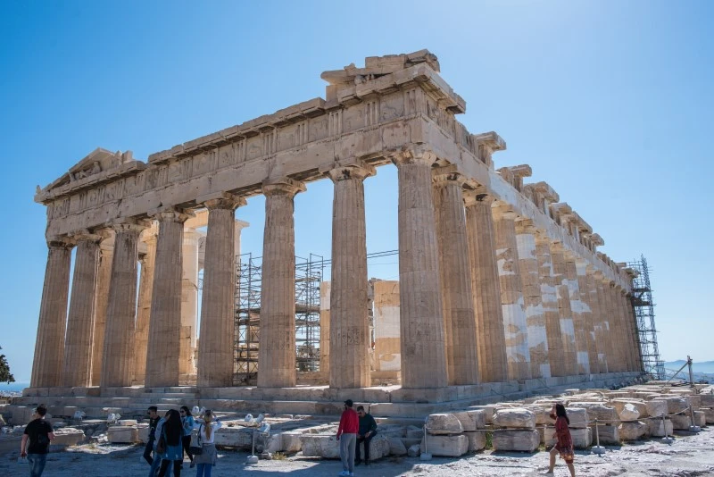 그리스의 신들이 자신을 섬길 도시를 고르던 중 아테나와 포세이돈이 두고 싸웠다는 도시, 아테네. 소금물 우물을 만들어준 포세이돈 대신 올리브 나무를 선물한 아테나를 선택한 도시 사람들이 여신을 숭배하기 위해 건설한 파르테논 신전. 사람들이 신전을 올려다봤을 때 생기는 왜곡까지 계산하여 황금비율로 만들었다는 신전은 자연을 숫자와 이성으로 접근하고 해석하고자 했던 그리스인들의 철학이 온전히 담겨 있는 건축의 완성, 그 자체다. 아테네의 가장 높은 곳에서 온 세상을 내려보며 평화와 번영을 약속했을 아테나 여신은 시간과 역사의 풍파 속에서 온데간데 자취를 감췄지만, 외벽의 석주만은 제자리에 남아 과거의 웅장했을 파르테논 신전을 기억한다.