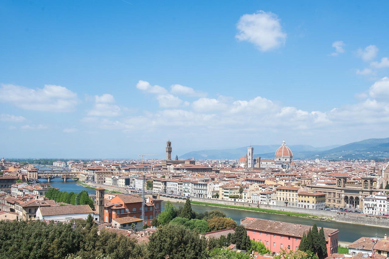 피렌체는 이탈리아 르네상스의 발상지이자, 그 정수를 담고 있는 도시다. 메디치 가문의 비호 아래에 자유롭게 예술과 인문학을 뽐냈던 시대의 천재들의 정신은 르네상스 이후에도 남아 전 인류를 빛내고 있다. 그들의 작품을 감상할 수 있는 박물관과 미술관을 차치하더라도, 피렌체는 또한 그 도시 자체만으로도 우아하고 품격이 있다. 천장 없는 박물관이라는 말이 있듯, 피렌체의 시간은 중세 언저리에서 멈춰있는 것만 같다. 붉은 지붕이 얕게 덮여 있는 중세의 도시는 인문학이란 원래 그렇다는 듯, 따스하고 포근하다. 피렌체를 조망하는 전망대는 여러 곳이 있지만 그 중에서도 미켈란젤로 공원이 제일로 손꼽히는 이유는 그런 피렌체의 감상을 가장 온전히 느낄 수 있는 곳이기 때문이 아닐까. 잔잔히 흐르는 아르노 강과 따스한 이불을 덮고 있는 듯한 도시의 지붕선, 그리고 그 위로 튀어 올라있는 순백의 두오모와 종탑의 조화는 감탄을 넘어 감동을 일으킨다.