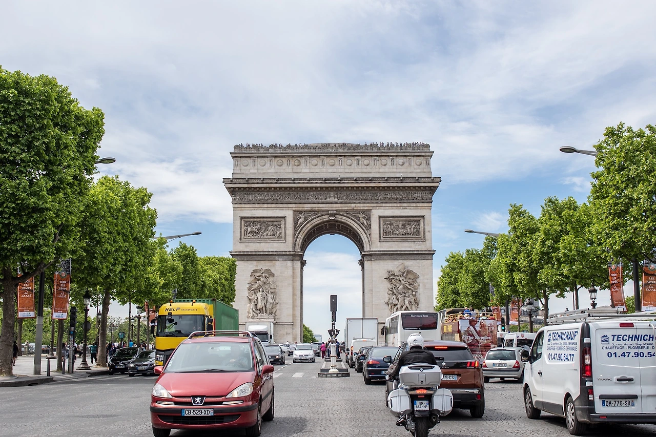 파리에서 가장 번화한 거리인 샹젤리제 거리의 끝, 별 모양의 샤를 드골 광장의 가장 중심에 거대한 개선문이 우뚝 서있다. 개선문의 본 목적은 물론 전사자를 추모하는 것일테지만, 파리를 방문하는 여행객들에게는 단지 파리를 한 눈에 볼 수 있는 전망대일 뿐이다. 티켓을 끊거나 뮤지엄 패스를 확인하면 긴 나선형 계단을 따라 올라갈 수 있는데, 그 순간이 조금 고통스럽더라도 곧 만날 멋진 파리의 모습을 상상하면서 잠시만 인내하도록 하자. 파리 구도심은 높은 건물이 거의 없기 때문에 개선문정도의 높이에서 보는 모습이 가장 아름답다. 게다가 몽파르나스 타워, 에펠탑 등의 모습이 보이지 않는 파리의 전경은 뭔가 2% 부족할터. 개선문을 중심으로 방사형으로 퍼져나가는 도로를 따라 시선을 옮기면 그 밖의 주요 명소들을 모두 눈으로 확인할 수 있다.