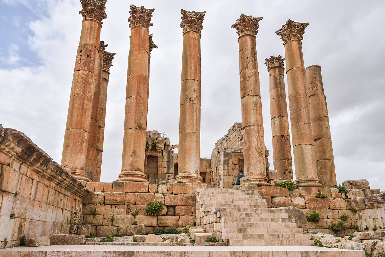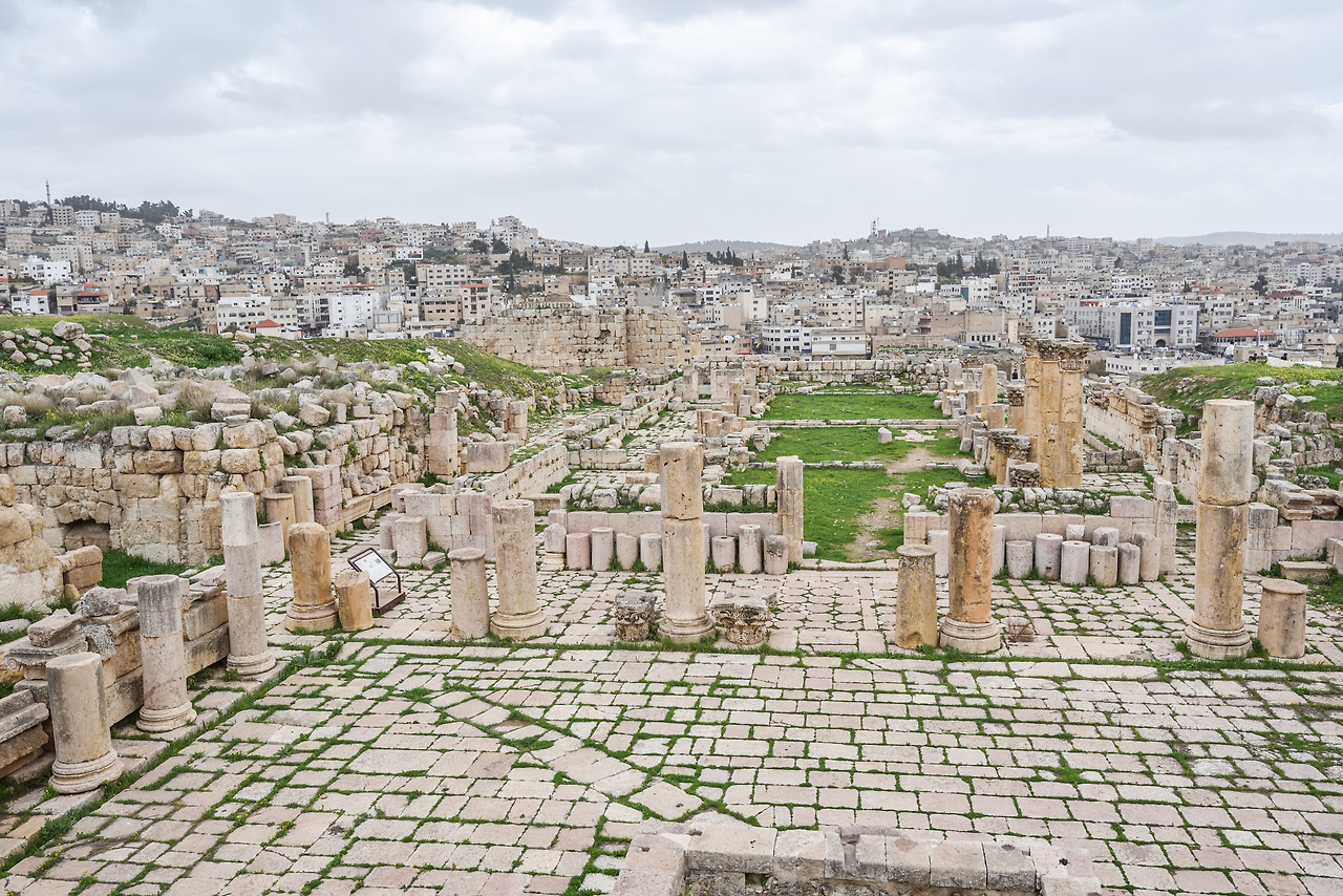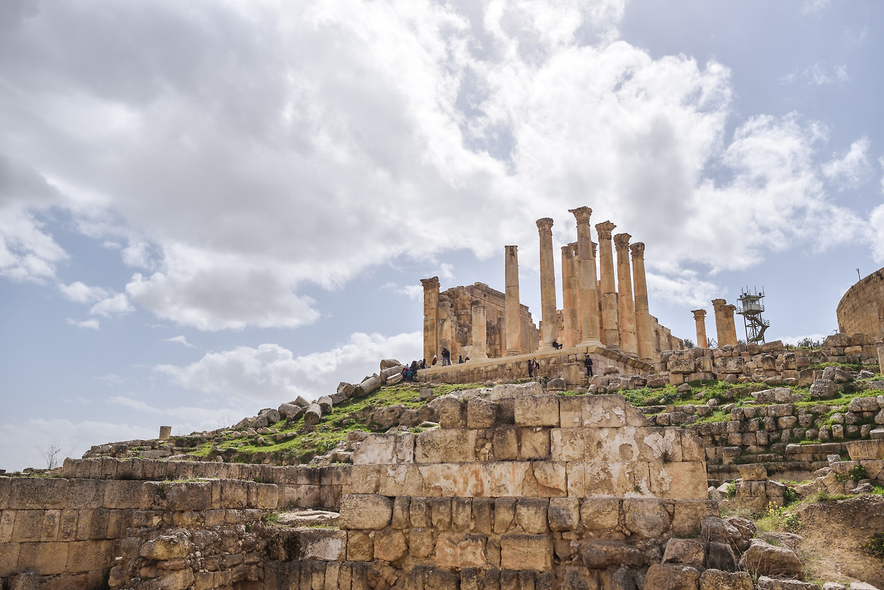 이탈리아 여행에서 로마 포럼을 다녀온 사람이라면 백번 공감하겠지만, 제라시 유적은 상당히 많은 부분이 보존돼 있으면서 심지어 어느정도는 도시의 형태를 유지하고 있다. 망자들의 공간에서 무기고, 상점가까지 다양한 변화를 겪었던 남문 앞의 거리는 상점들이 들어서 있었을 구획이 아직도 선명히 남아있고, 그 앞으로는 단을 높이 세운 신전 구역이 있다. 단 위의 언덕 위로 세운 신전은 그리스-로마의 주신인 제우스-주피터의 신전이다. 가톨릭과 이슬람의 영향권에 들어가면서 이교의 성역은 많은 부분이 파괴됐지만 높은 곳의 제우스 신전의 기품은 여전하다.