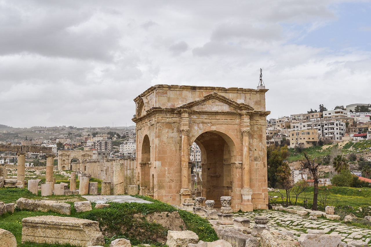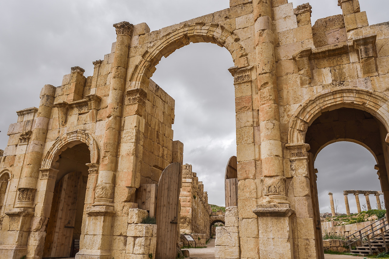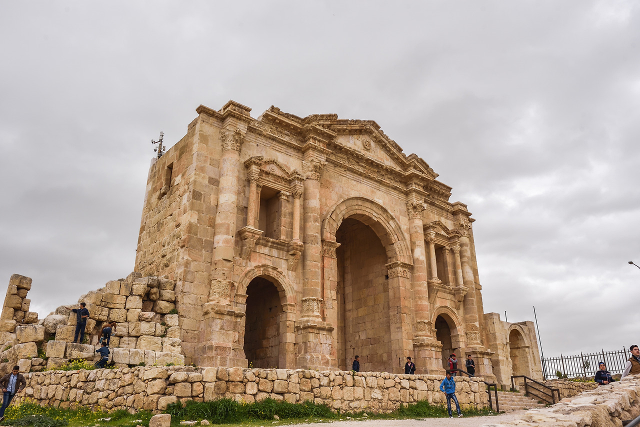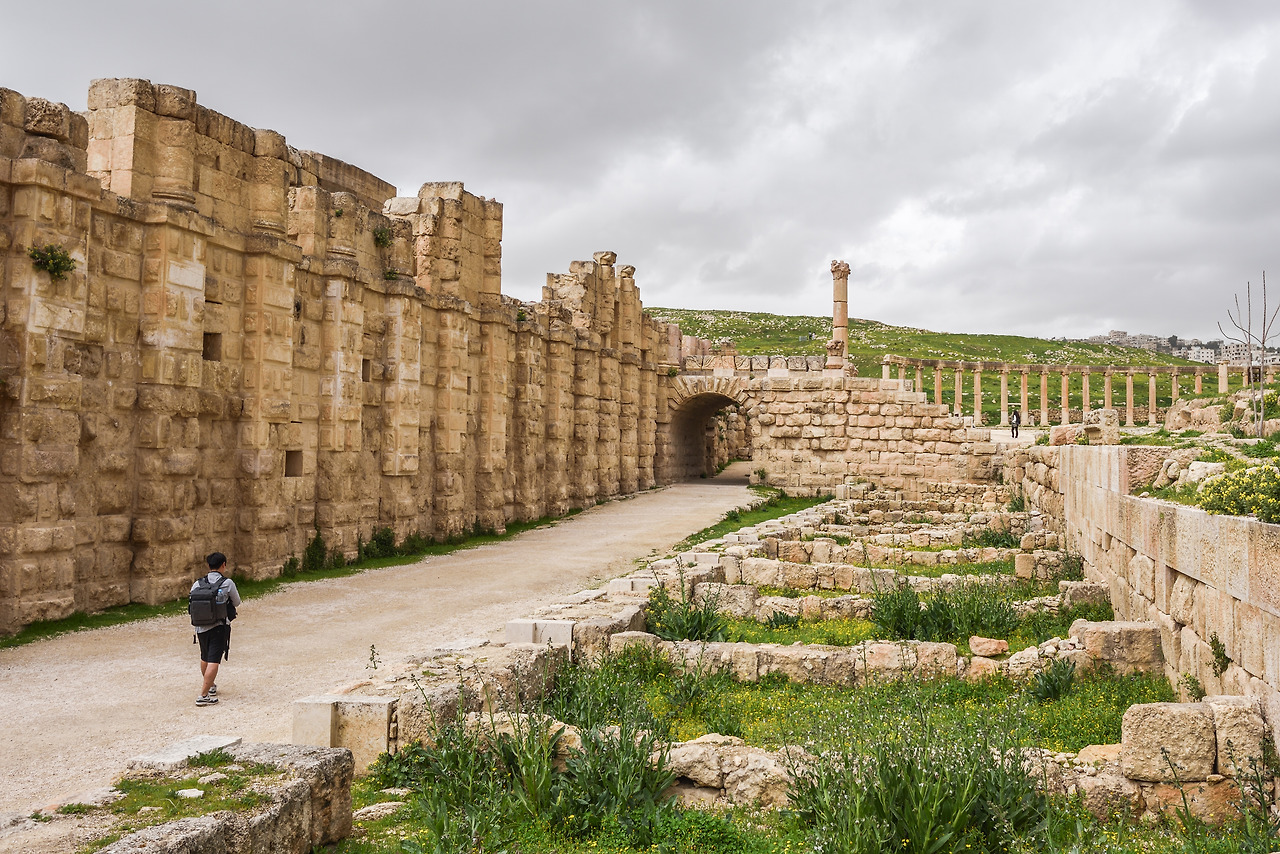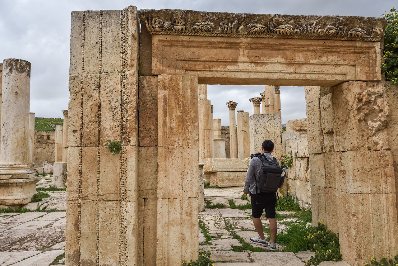암만의 도시스러운 풍경에 조금 적응됐는지, 또 다시 휑한 유적을 오니 뭔가 마음이 싱숭생숭했다. 한적한 도로변에 내린다고 당황할 필요는 없다. 그 바로 앞의 위풍당당한 하드리아누스 문이 제라시 유적에 앞서 방문객들을 맞이하고 있으니 길 잃을 것 없이 바로 들어가면 된다. 작은 주차장과 망한 것인지 단지 쉬는 것인지 알 수 없는 기념품 가게들의 초입을 통과하면 드디어 하드리아누스 문 앞에 이르게 된다. 인생의 첫 로마 유적이었다. 숨을 크게 들이쉬고, 긴장되는 마음으로 문을 통과했다. 이제부터는 로마의 시간이자, 공간이었다.