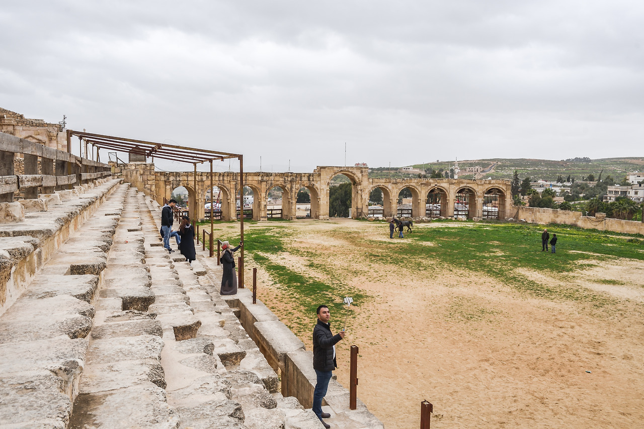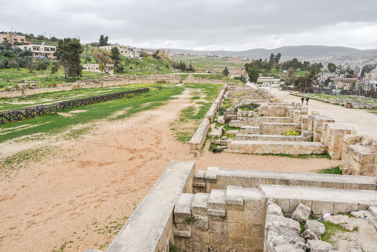 하드리아누스 문을 통해 유적을 들어간다면 남쪽의 도시 외곽에서 북쪽으로 훑고 오르는 형태로 도시를 둘러보게 된다. 가장 먼저 만나게 되는 것은 타원형 모양의 마차 경기장이다. 영화 <벤허>에서 나왔을 말들의 거친 숨소리와 마차의 바퀴가 부딪히며 내는 파열음으로 가득했을 열정의 스타디움은 그저 고요한 바람소리와 그에 흐느끼는 잡초로 가득할 뿐이다. 경기장을 지나 도시 남문을 통해 들어가면 그 때부터가 진짜 제라시의 시작이다.