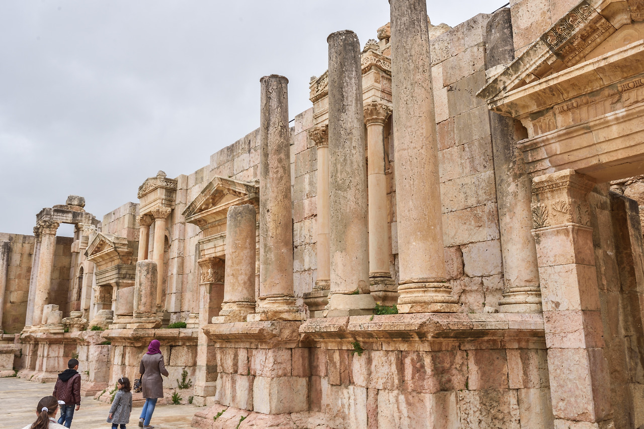 도로를 따라 걸으면 과거 로마 제국기의 시장이었던 공간과 비잔티움 제국 때의 성당, 우마야드 왕조 때의 모스크의 흔적까지 다양한 시간의 중첩을 느낄 수 있다. 하지만 역시 제라시 유적의 하이라이트는 도시의 주신인 아르테미스 여신을 모시는 신전 구역일테다. 성역 입구를 지나 계단을 오르면 넓은 광장이 나오고 그 중앙에 다소 외로이 신전이 자리하고 있다. 화려했을 여신의 성역은 시간의 풍파에 쓸려나가 온데간데 없고 단지 어느 목동의 염소들이 한가로이 풀을 뜯는 잡초 무성한 초원이 됐으니, 이 또한 세월무쌍이렸다.