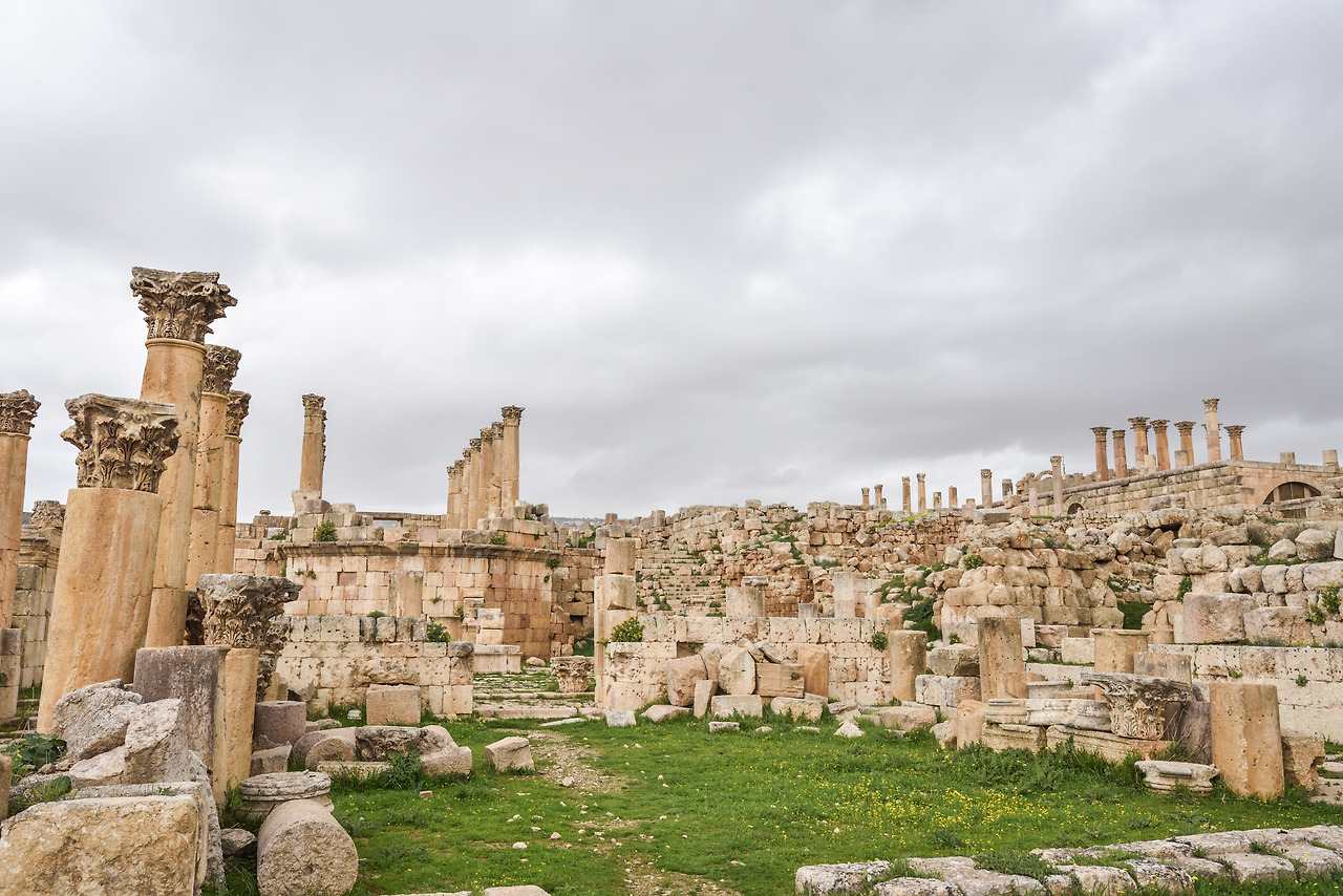 요르단 여행의 끝이 보인다. 제라시는 암만에서 북쪽으로 한 시간여 떨어져있는 작은 도시다. 암만처럼 둔덕 사이의 계곡에 자리잡은 작은 소도시에 수많은 여행객들이 몰리는 것은 다름 아닌 제라시 고대 로마 유적을 보기 위함이다. 그 규모가 상당히 크고, 마을과 꽤 가깝게 붙어 있어서 현재의 생활공간과 천년 전의 유적이 작은 하천을 사이에 끼고 기이하게 균형을 맞춰 공존하고 있다.