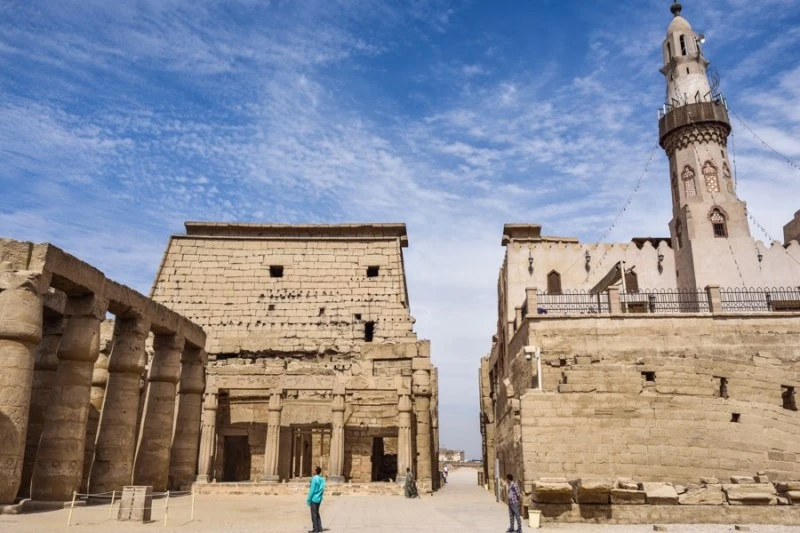 룩소르 동안의 룩소르 신전은 아멘호텝 3세 때부터 그 유명한 람세스 2세 때까지 구성된 신전이다. 3킬로정도 떨어져 있는 카르나크 신전의 부신전격의 성역이다. 동안은 생자의 도시이기 때문에 서안에서 봤던 신전들이 모두 파라오의 장제전이었던 것에 비해 룩소르 신전은 온전히 신에게 바치는 사원이다.