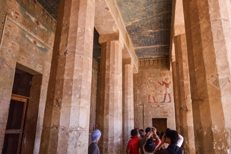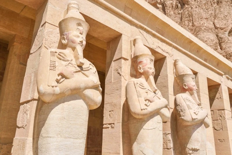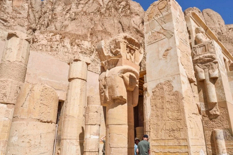 수염을 달고 남장을 하며 왕국을 통치했던 신비의 여자 파라오 하트셉수트. 그녀의 장제전은 다른 사원과 사뭇 다른 형태로 눈길을 끈다. 넓은 평야에 앉아 높은 탑문을 세워 마치 무에서 유가 창조되는 듯한 모습이 일반적인 사원의 모습이다. 하트셉수트 장제전은 배산임수라도 생각했던 것일까, 위풍당당한 돌산을 등에 끼고 3개의 층을 만들어 계단으로 각 층을 잇는다. 메디나트 하부의 안뜰 같은 역할을 1층 지붕이 대신하고 있다. 계단을 중심으로 정면을 바라보면 좌우로 완벽하게 대칭을 이루고 있는 것이 상당히 인상적이다. 윗단은 지진 때문에 파손된 것을 사암으로 복원한 것이라 약간 어색함이 느껴지지만 1층만큼은 3천년 전의 그 모습을 그대로 유지하고 있다.