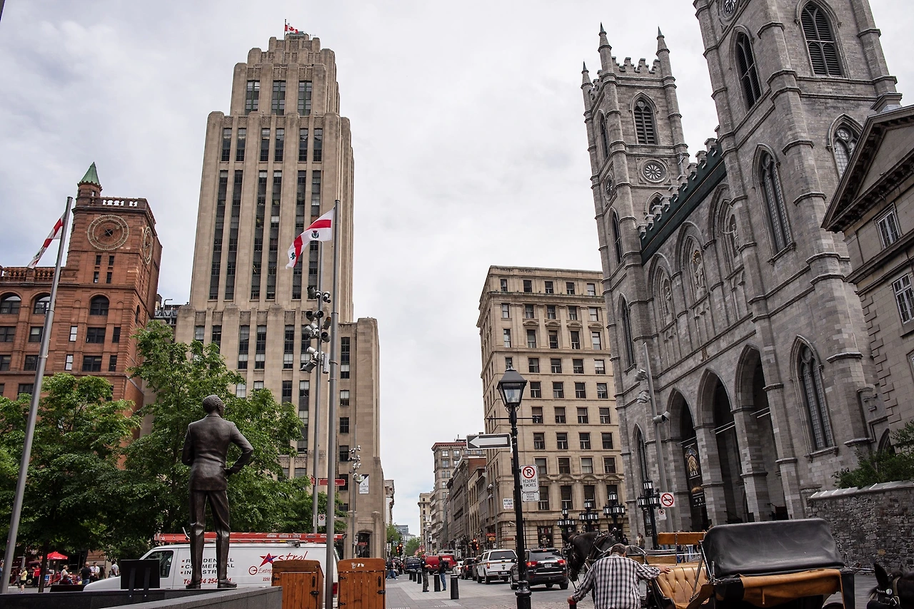 아름 광장(Place d’Armes)은 두 문화의 충돌을 한 눈에 볼 수 있는 흥미로운 장소다. 광장을 중심으로 한 쪽에는 노트르담 대성당이 있고, 그 맞은 편으로 몬트리올 은행이 있는데, 그 옆에 서있는 작은 동상들이 재밌는 이야기를 연출한다. 광장의 한 쪽에 잉글리시 퍼그를 안고 있는 영국 남자와 푸들을 들고 있는 프랑스 여자가 각각 노트르담 성당과 몬트리올 은행을 노려보고 있다. 이 모습은 대성당이 상징하는 프랑스 문화권과 은행이 상징하는 영어 문화권이 서로 화합할 수 없다는 것을 블랙 코미디로서 표현하고 있다. 실제로 퀘벡은 끊임없이 분리독립 운동을 전개하고 있다.