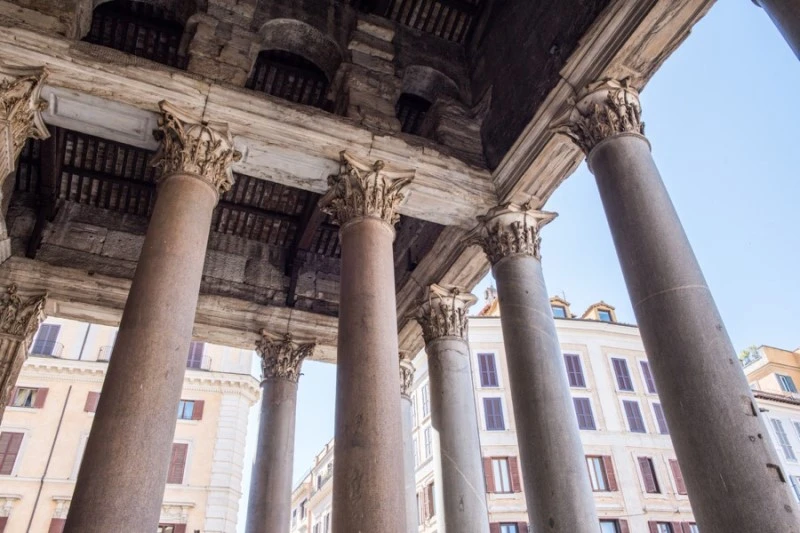 커다란 콘크리트 돔을 머리에 얹고 있는 판테온의 자태는 형언하기 어려울 정도로 놀랍다. 천장화와 벽화로 치장하고 있는 기타 교회와 비교하자면 단조롭고 수수하지만, 이렇게 거대한 건축물 앞에서 그 누가 시시하다는 감상을 읊조릴수있겠는가. 거대한 석주 위에는 글자 하나가 사람만큼 크게 새겨져 있어 수천년이 지난 지금까지 그 이름들이 현대인들에게 전해지고 있다.