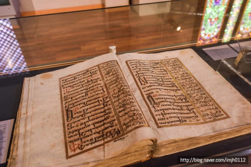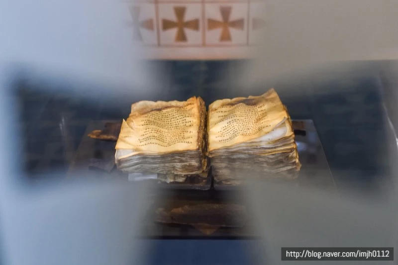 수많은 유물들 중에서 특히 중요한 소장품은 나그하마디 고대 문서다. 나일강 상류의 나그하마디 마을에서 발견된 이 문서는 3, 4세기 경에 작성된 문서인데 <신약성경>부터 플라톤의 <국가>까지 다양한 문서들이 콥트어로 적혀있다. 햇빛과 카메라 플래시에 의한 손상을 막기 위한 것인지 불투명한 유리상자 안에 보관 중이다. 십자가 모양으로 작게 투명한 부분을 만들어놔서 그 쪽에 눈을 대고 봐야 문서의 정체를 볼 수 있다.