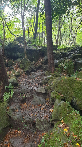 탐방로 모든 돌들은 고운 이끼에 덮여있고 숲은 온통 고사리 같은 양치류로 빼곡하다.