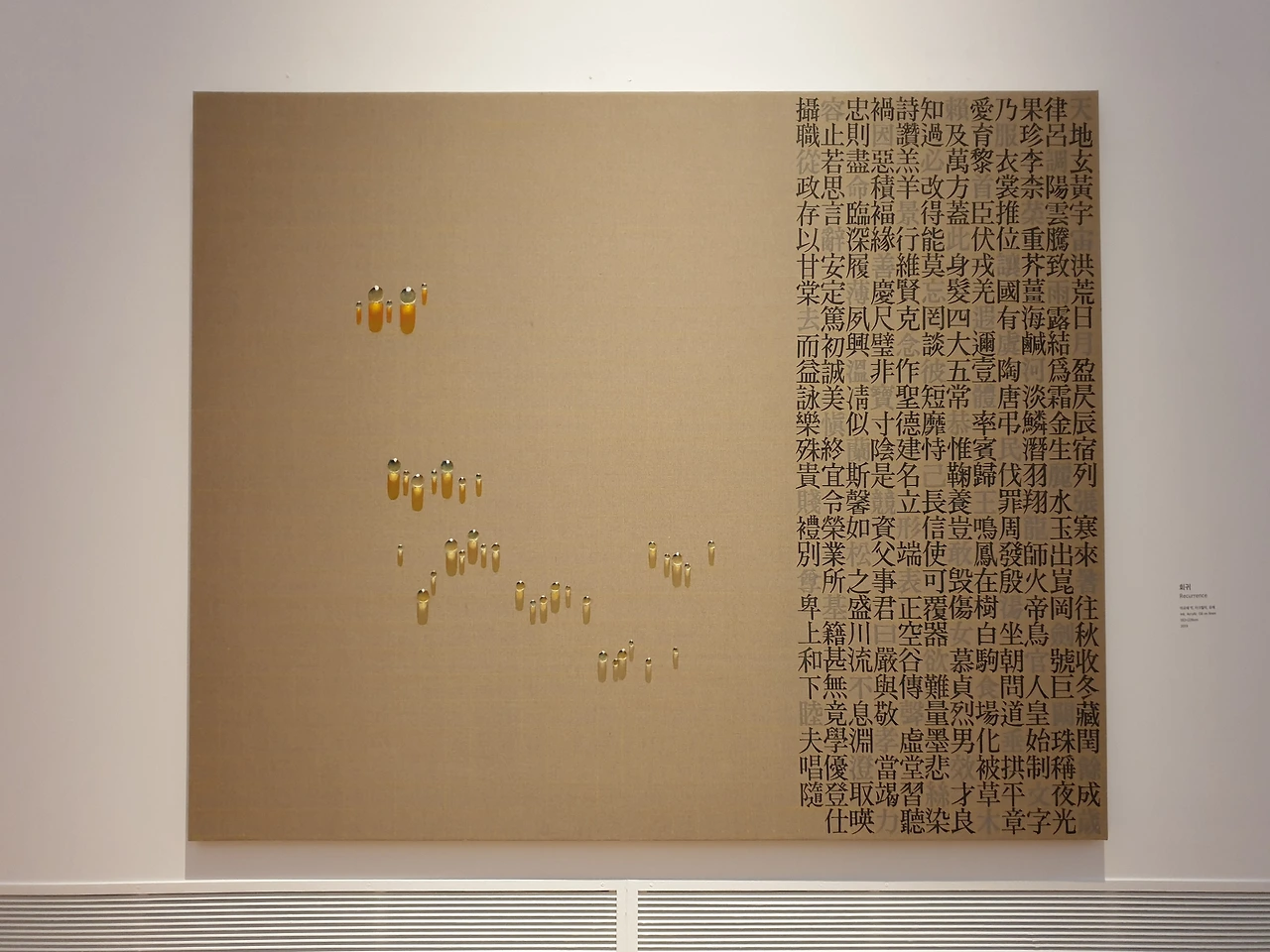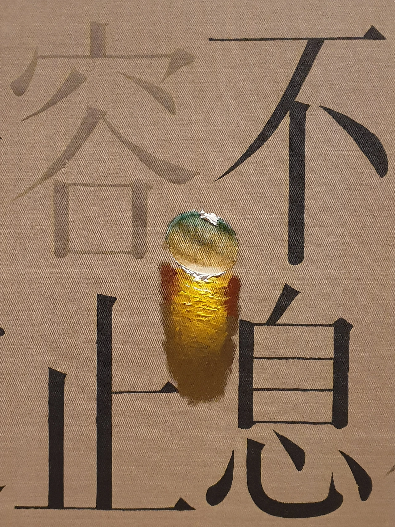 물방울의 배경에 왜 한자들이 적혀있는지 궁금했는데 할아버지에게 천자문을 배우던 어린 시절을 그리워하며 그렸기 때문이란다.