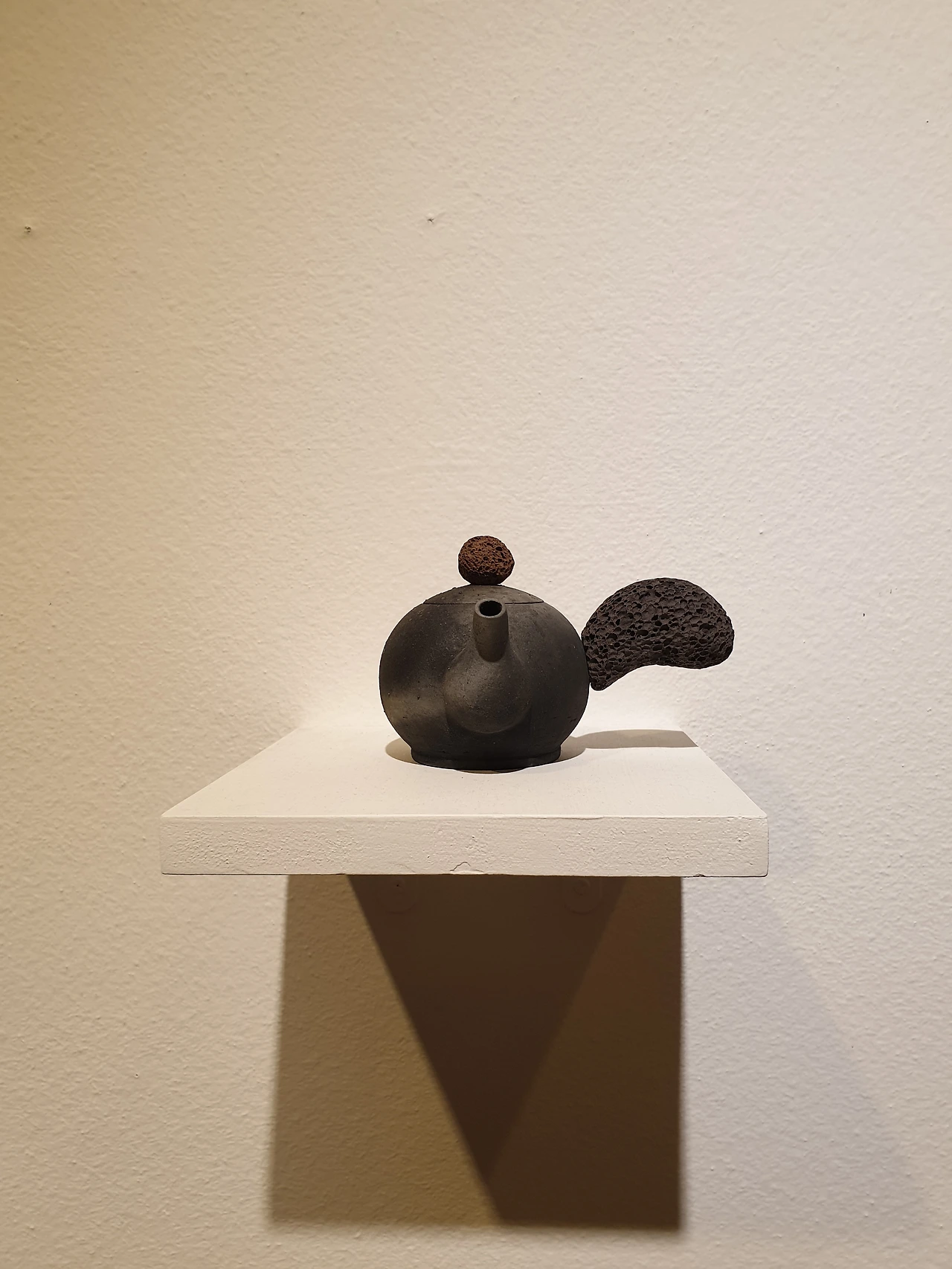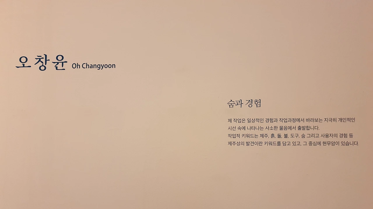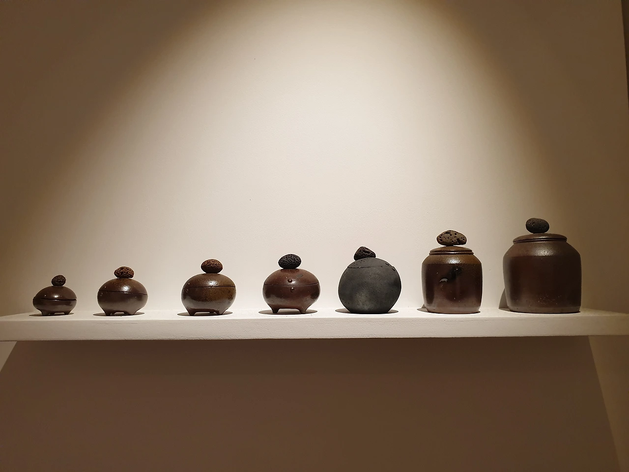 제주의 까만 현무암이 도기와 묘한 조화를 이루는 작품.