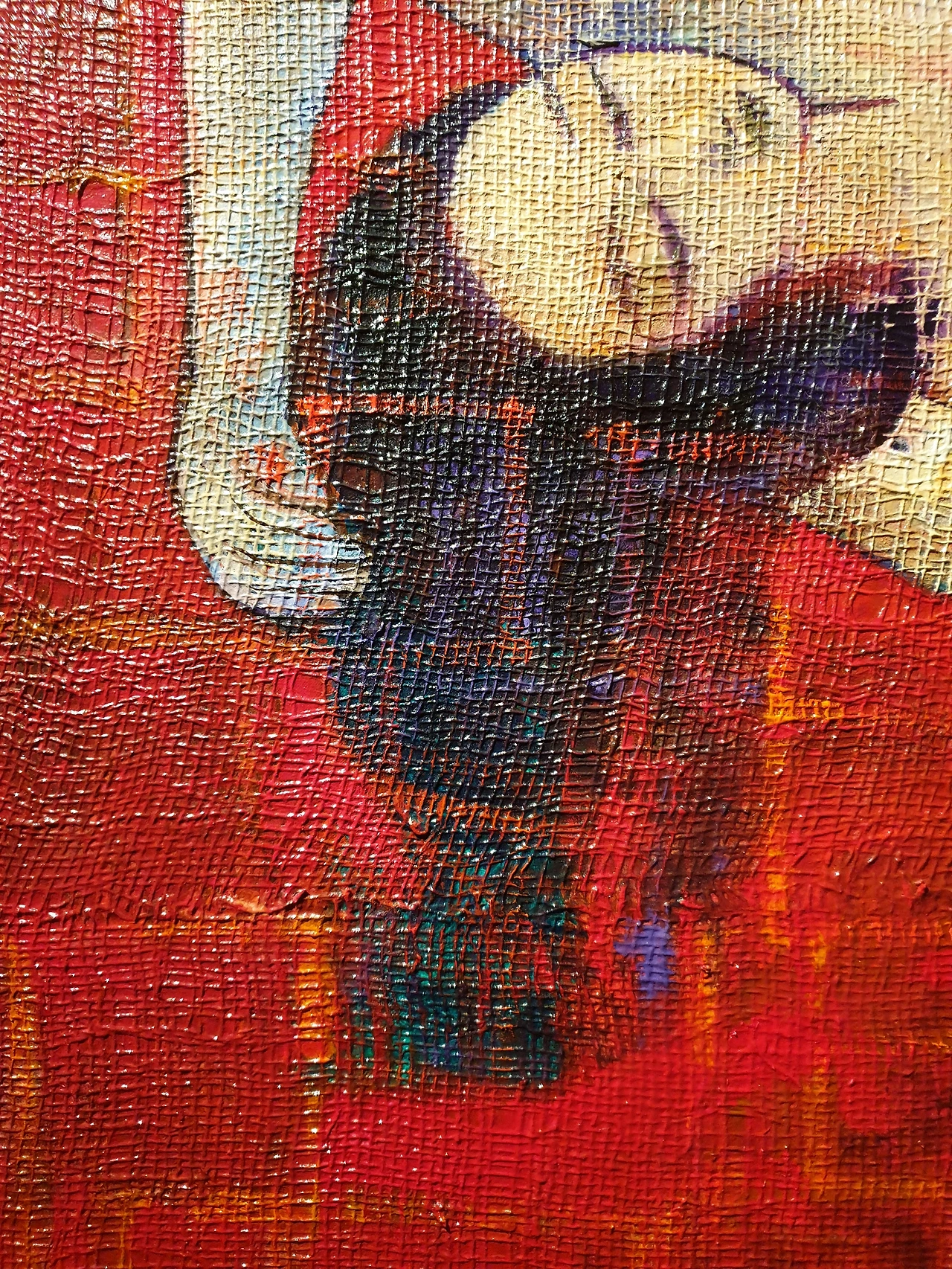 질감이 매우 독특해서 들여다봤는데 그냥 Oil on canvas 혹은 Mixed media on canvas라고만 적혀있었다.