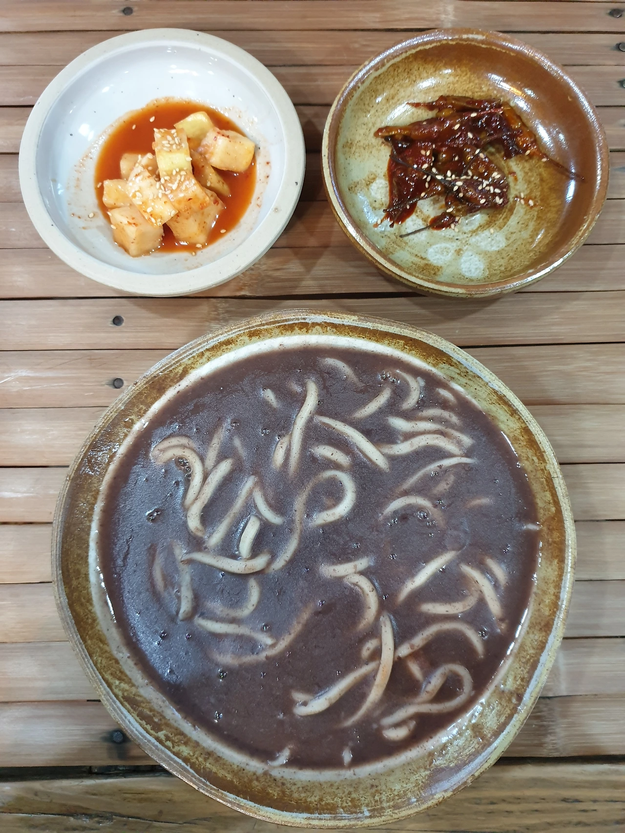 면 굵기가 고른 것으로 봐선 수타면은 아닌 듯한데 수타만큼이나 쫄깃하고 광주에서 먹던 팥죽처럼 진하다.