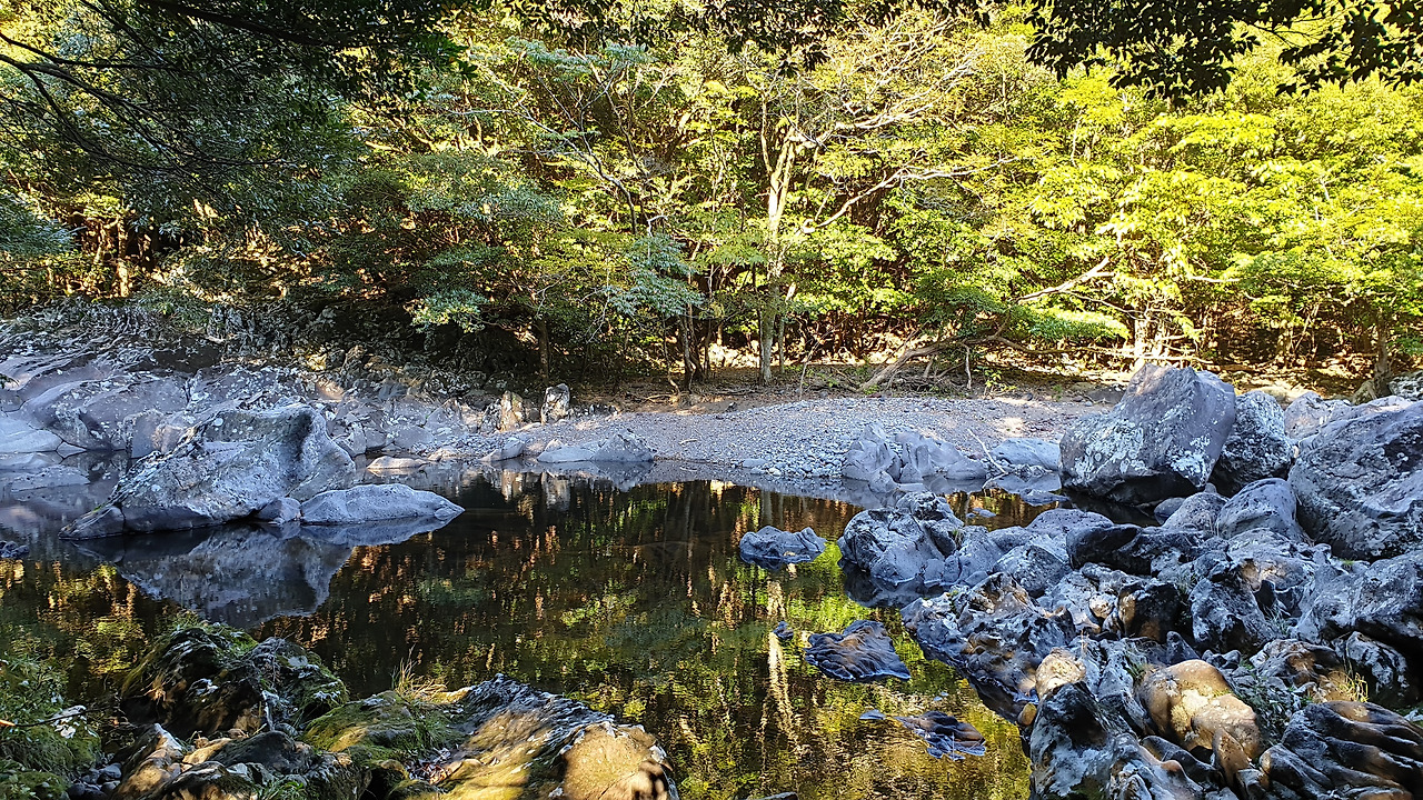 사람도 많지 않았고 트레킹하는 코스 자체도 진짜 숲 속의 오솔길을 걷는 기분으로 편백나무숲도 간간히 지나고 용암석으로 보이는 멋진 돌들 사이로 흐르는 맑은 계곡물을 따라 서방천을 끼고 걷는 길이 정말 아름다웠다.