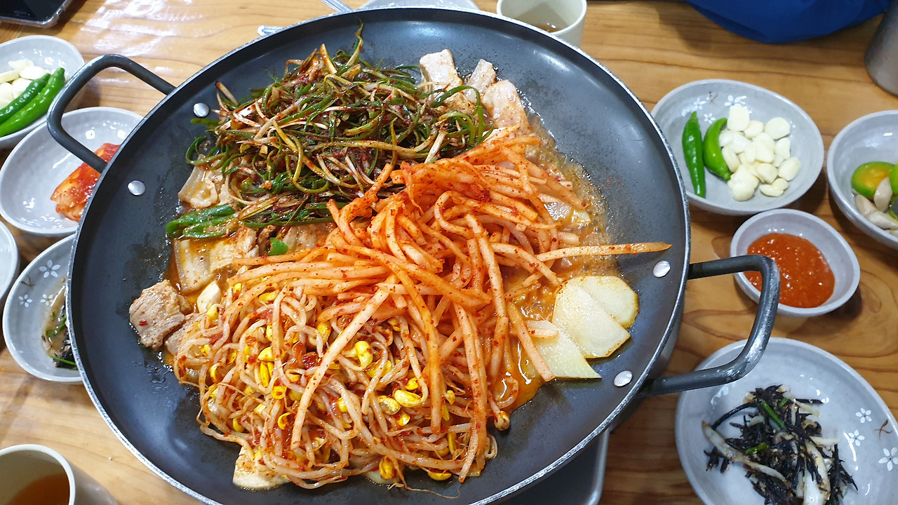 도민 추천 식당에서 제주식 흑돼지 두루치기에 볶음밥까지 야무지게 볶아서 오늘도 보람찬 하루 마무리!