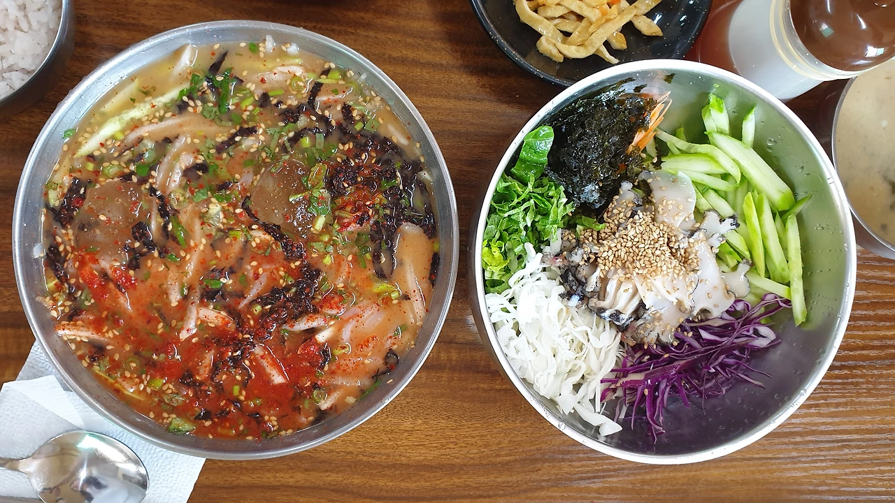 된장 베이스의 제주도식 물회는 오늘도 여전히 맛있었다.