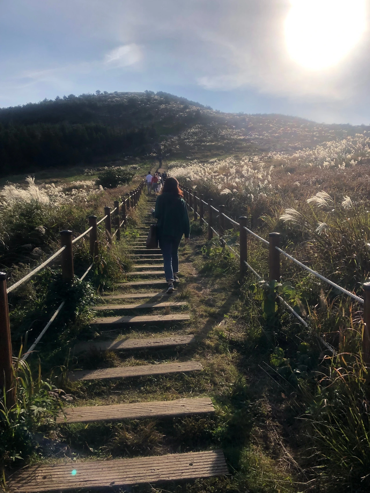 약초가 많아 백약(百藥)이오름이라는데 식알못인 내가 약초를 알아볼 수는 없었지만, 억새와 수크령과 이름 모를 들꽃들로부터 거센 바람에 연약하게 휘날릴지언정 결코 부러지지 않는 강인함, 그리고 꺾이지 않는 유연함으로 올곧게 스스로를 지켜내는 지혜를 배운다.