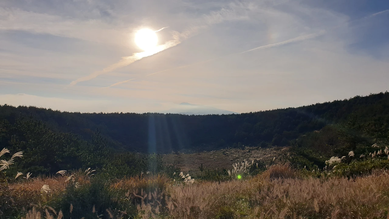 휴식년이라 꼭대기 부근은 출입이 제한되어 있었지만, 멀리 한라산과 층층이 오름들, 바다 쪽으로는 성산일출봉, 우도까지 내다보기에는 굼부리 둘레길로도 충분하다.