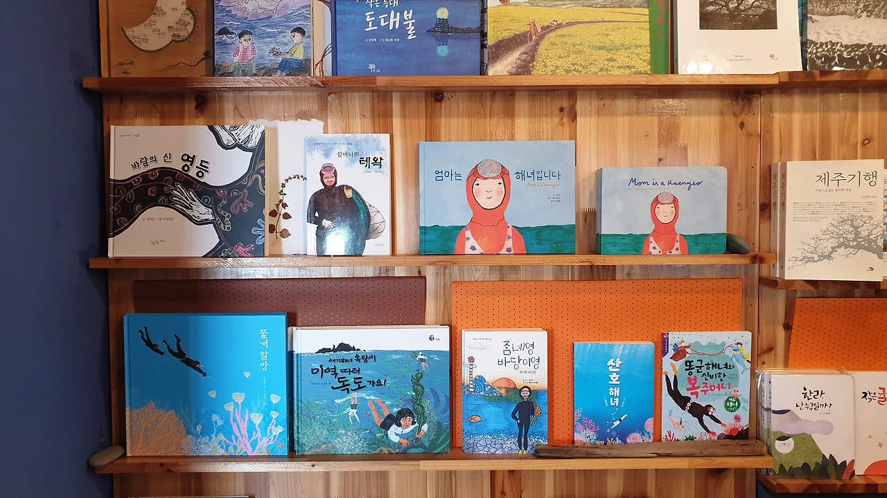 또다른 공간에는 제주 관련 서적들만 모아두었는데 제주여행과 관련한 예쁜 이야기들 뿐만 아니라 제주 사투리나 제주 신화 등을 연구한 전문적인 서적들도 있다.
