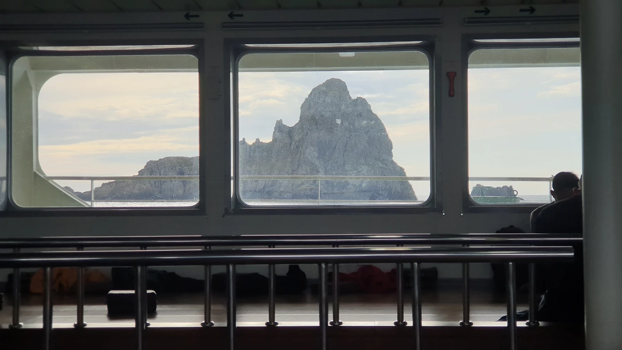 추자도 도착을 알리는 방송에 잠을 깨고 내다보니 추자도 인근 섬들의 풍광이 예사롭지 않다. 선실에서 보니 병풍처럼 펼쳐져 아주 미려하다.