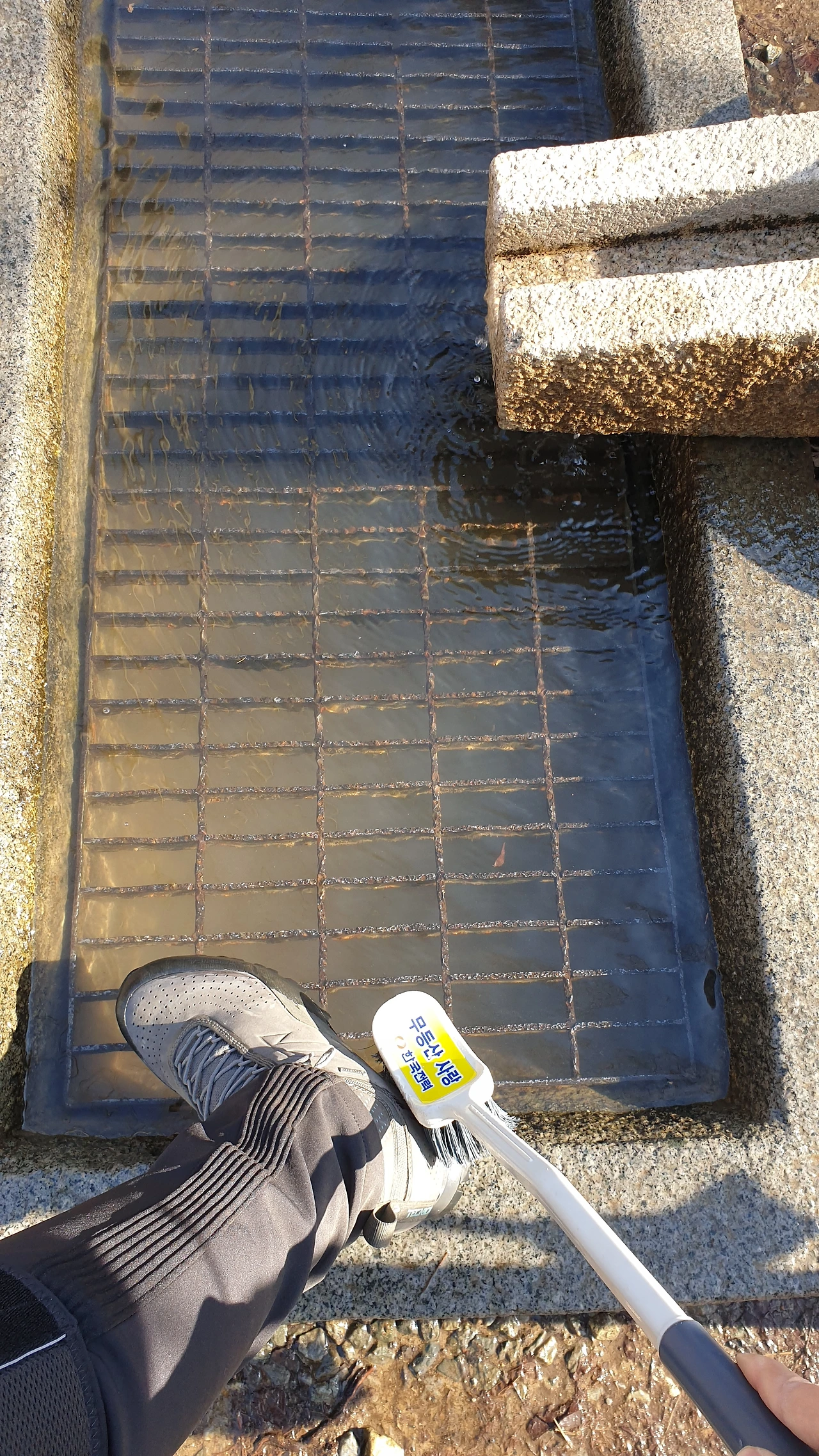 등산로 입구에서 등산화도 쓱싹쓱싹 깨끗하게 닦아준다.