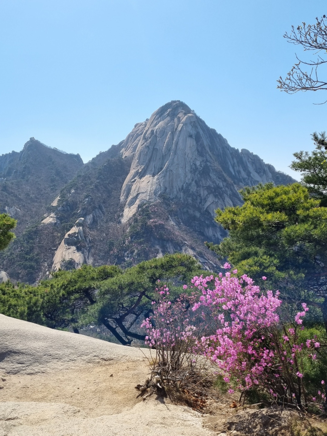 원래도 웅장한 암릉미 뿜뿜한 북한산이지만 신록의 새순들과 곳곳의 분홍빛 진달래가 봄날의 화사함을 더해준다.