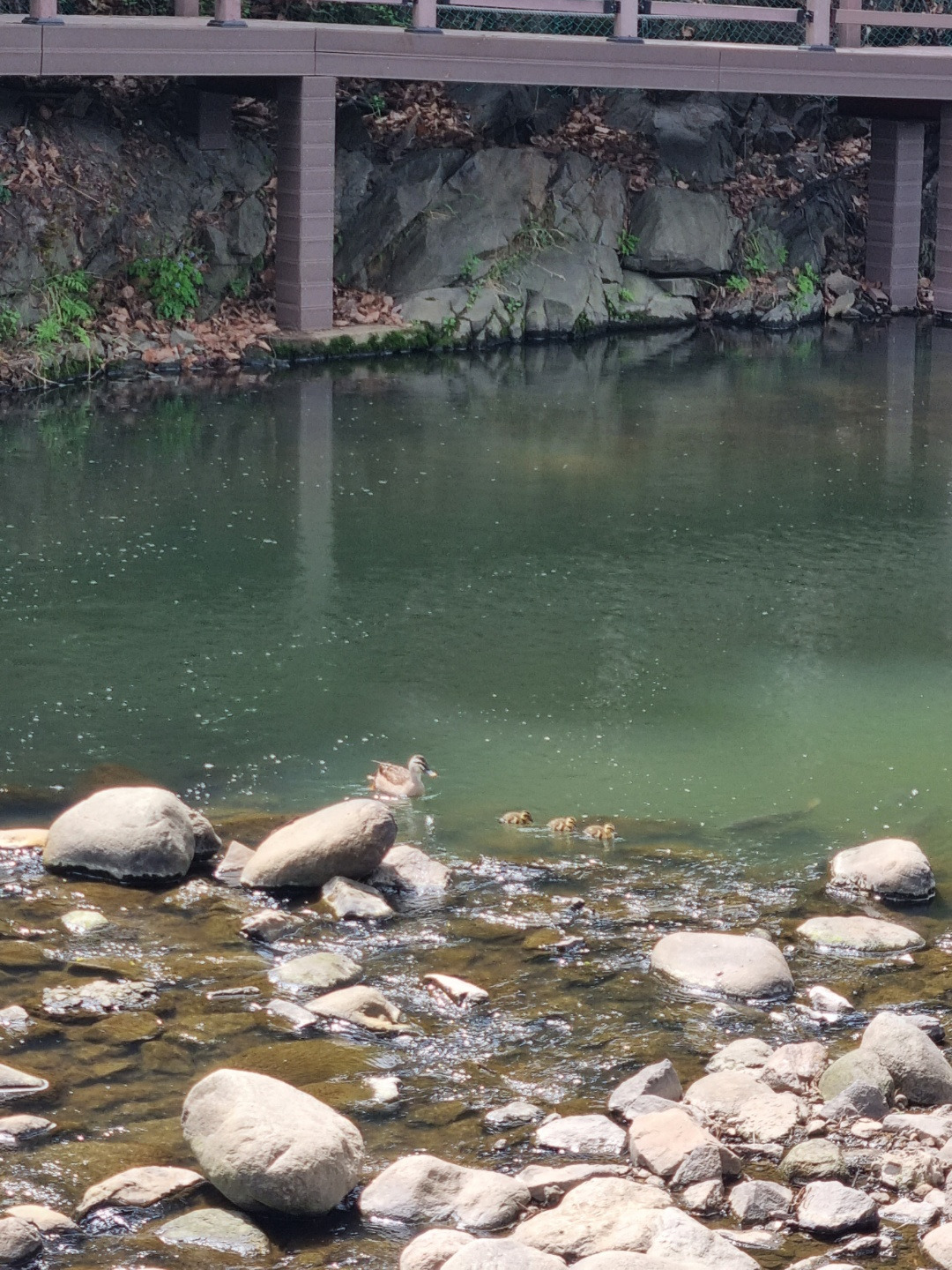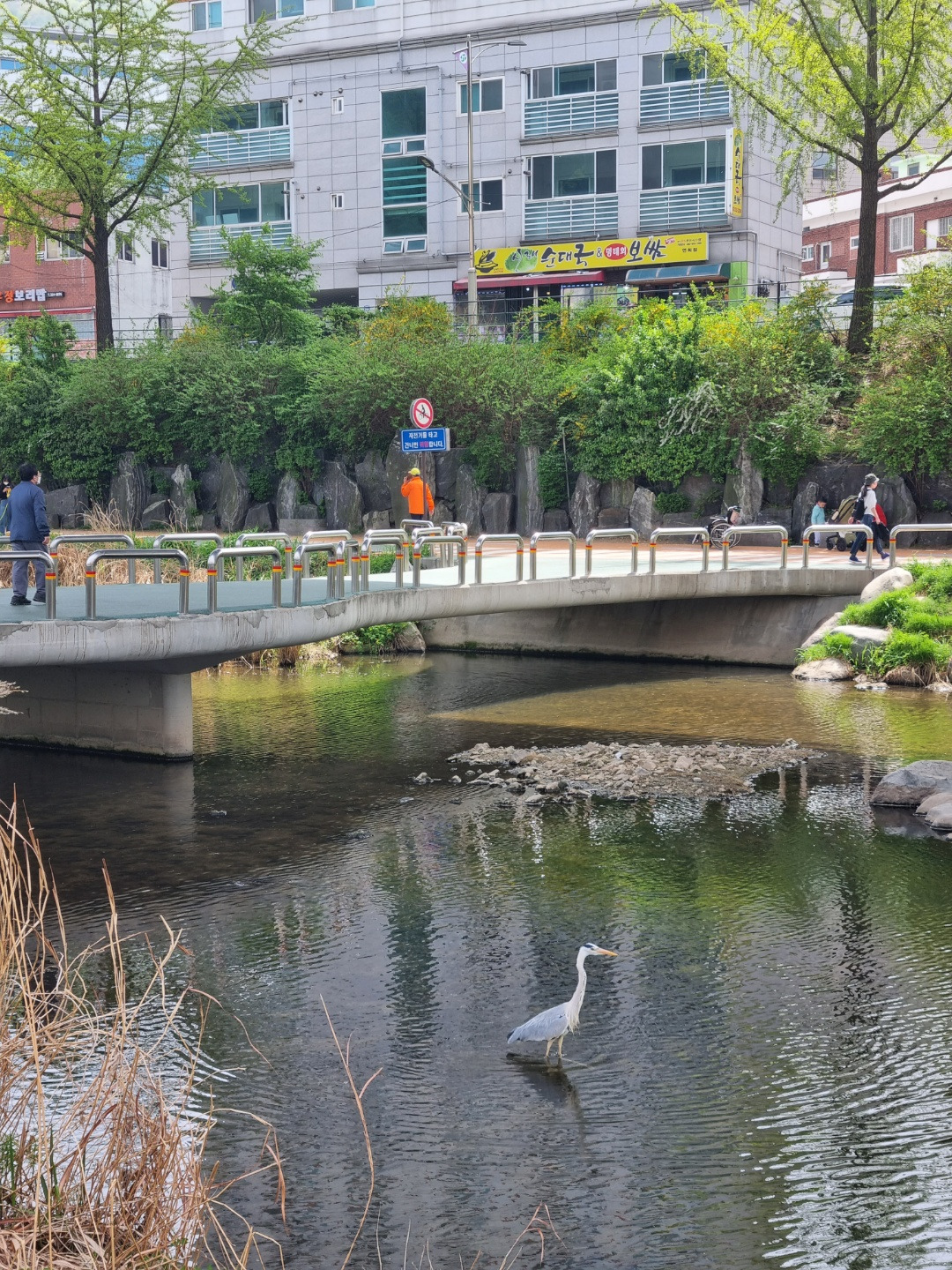 백로(인지 왜가리인지 모르는 새알못)가 고요히 볕을 쪼이고 엄마 따라 나들이 나선 아기오리들이 헤엄치는 평화로운 풍경을 따라 잠시 걷다 보면 맞은편에 커다란 인공폭포가 보인다.