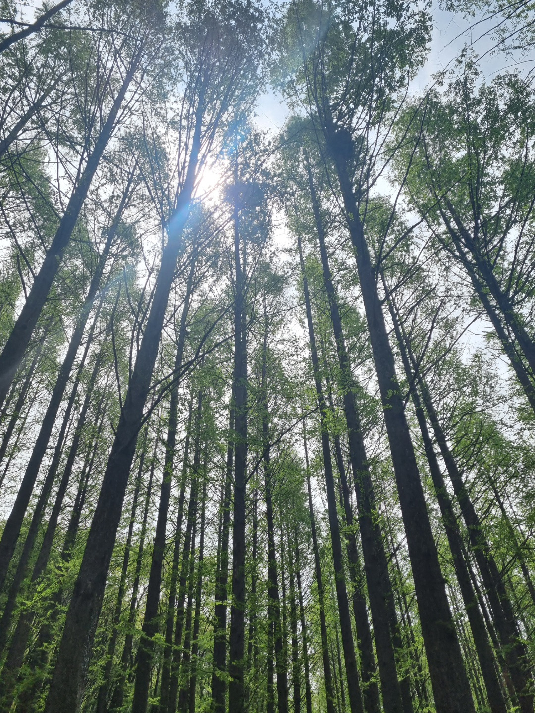 연두연두한 새순이 봄의 안온함을 전해주고 곧게 뻗은 메타세쿼이어 나무 사이의 햇살과 바람이 포근한 봄기운을 더해준다.