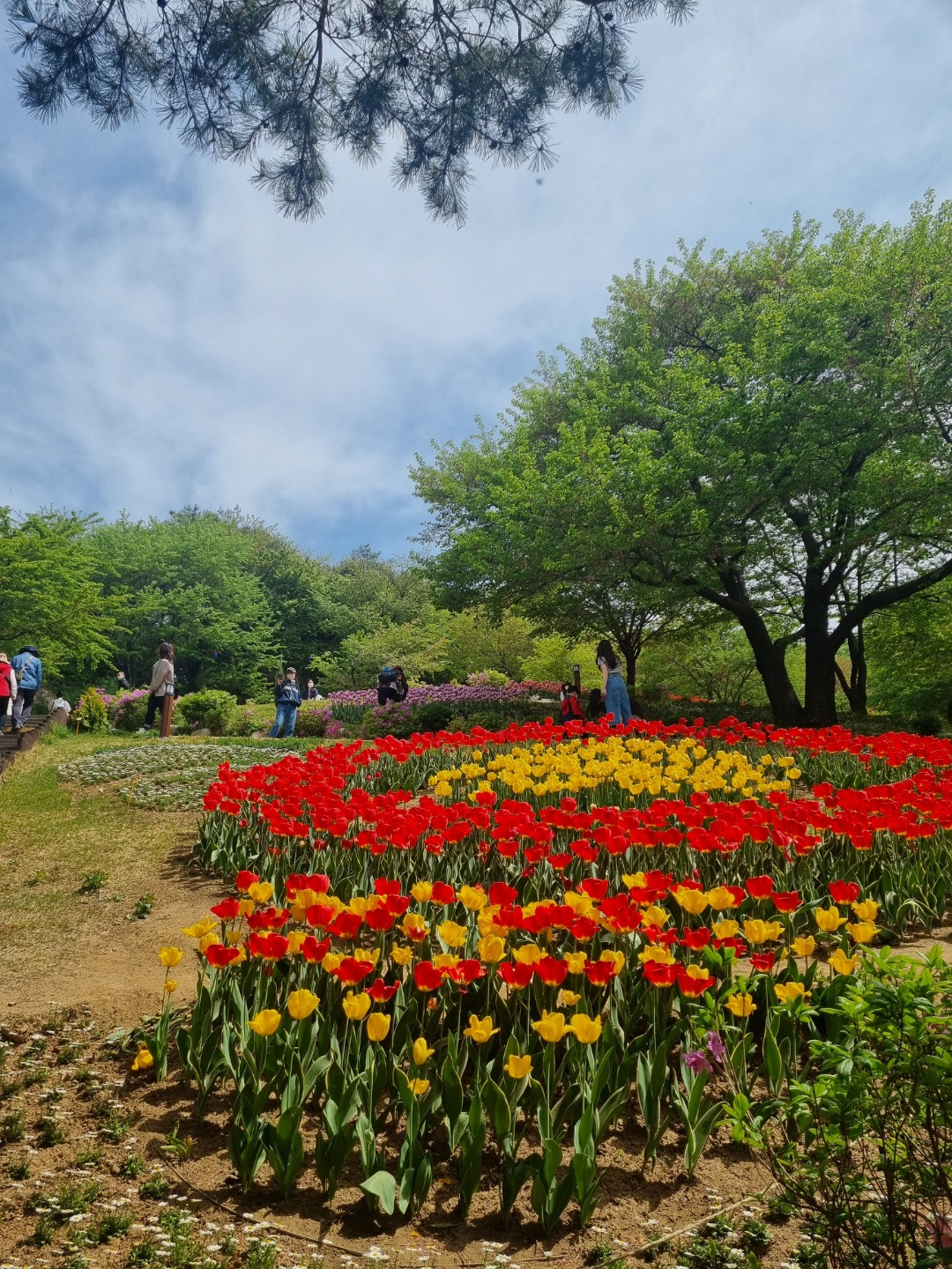 색색별 튤립과 진달래, 철쭉이 만개한 (커플천국) 꽃동산의 인파를 헤치고 안산둘레길로 들어선다.