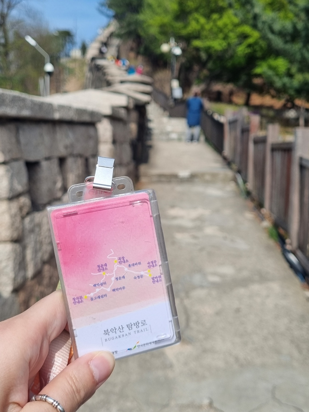 창의문 안내소에서 출입증 목걸이를 받고 북악산 산행 시작.