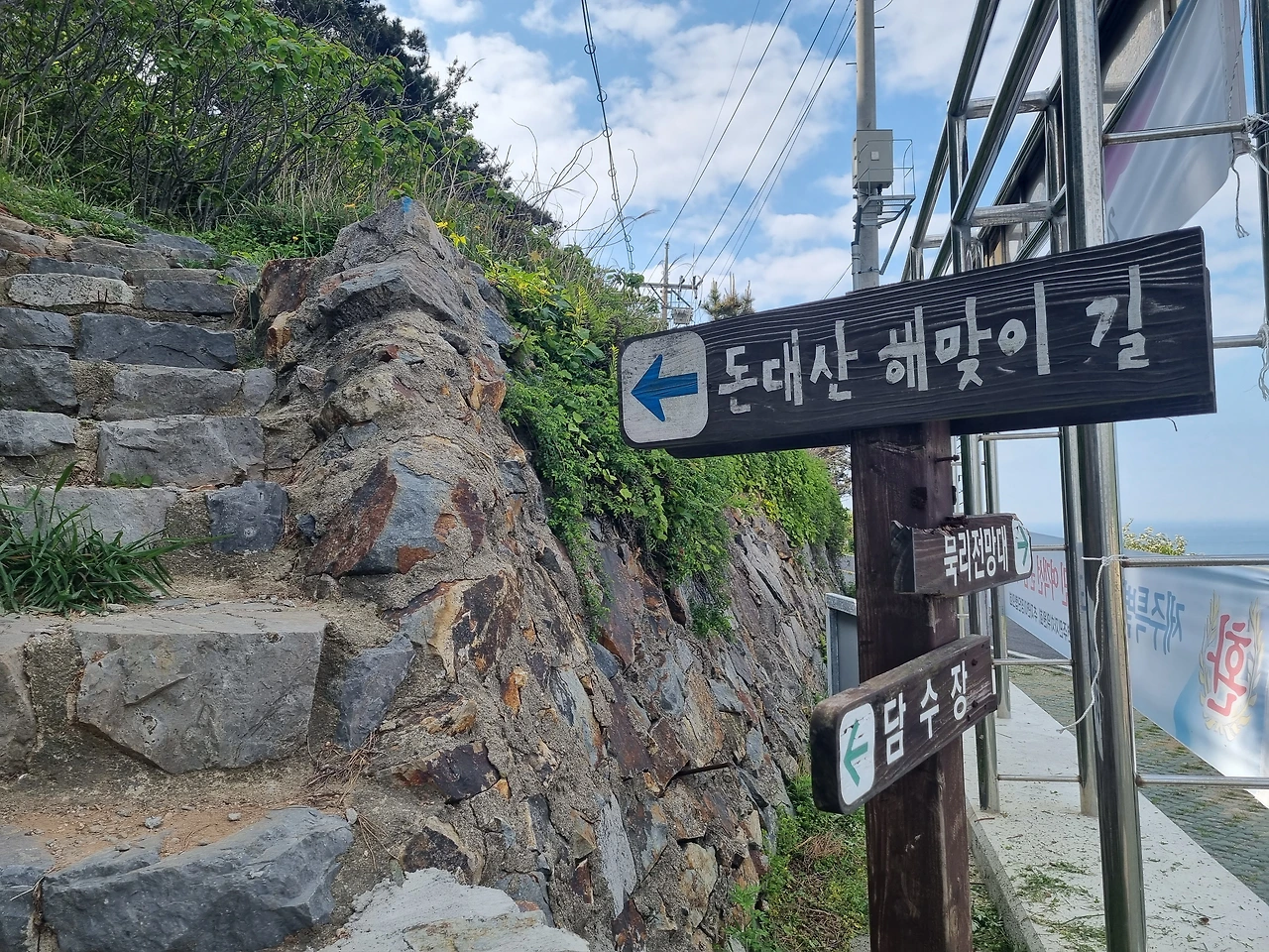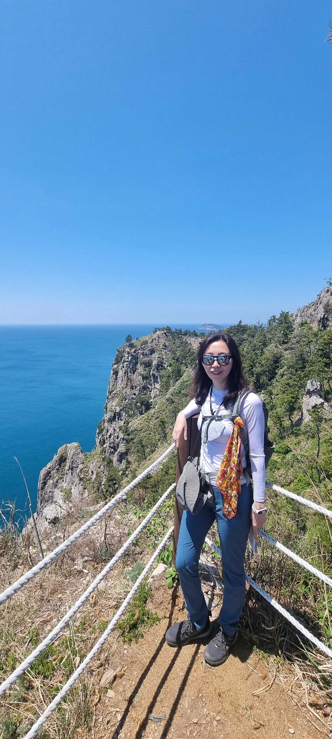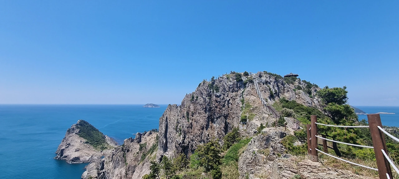 세 번째 봉우리의 정자에서는 바닷바람이 어찌나 센지 바람막이를 꺼내입어야 했다.