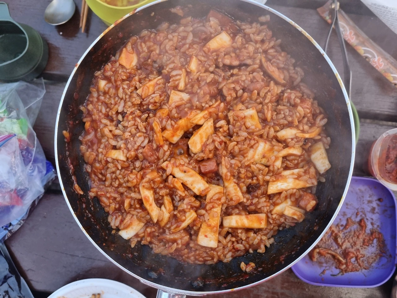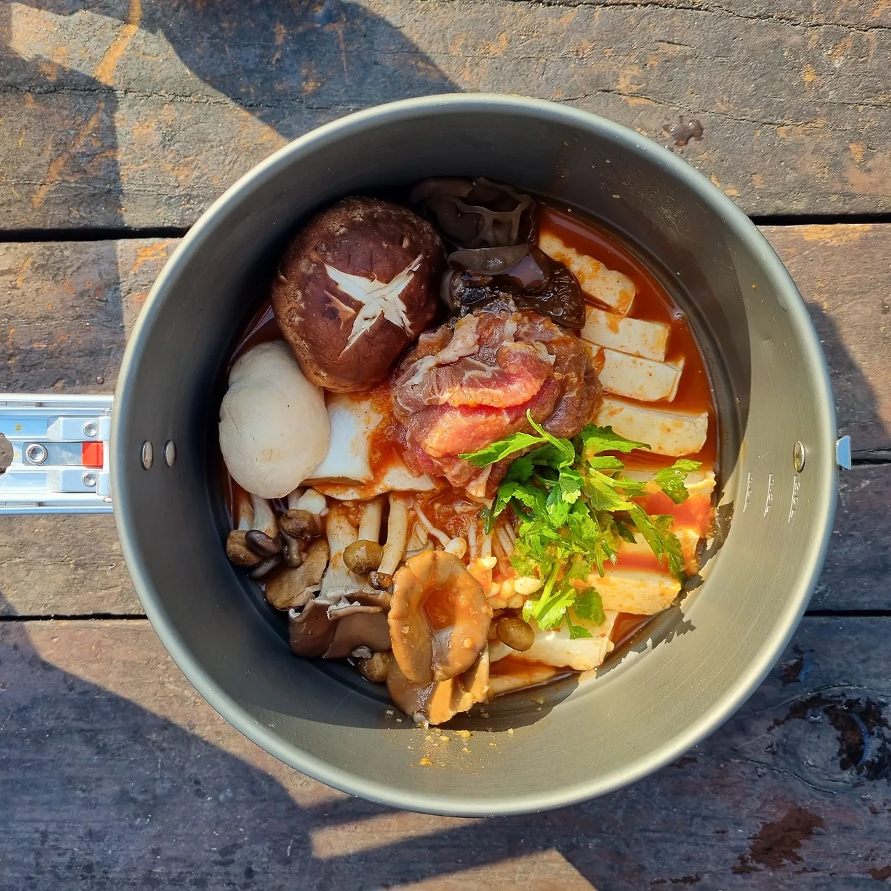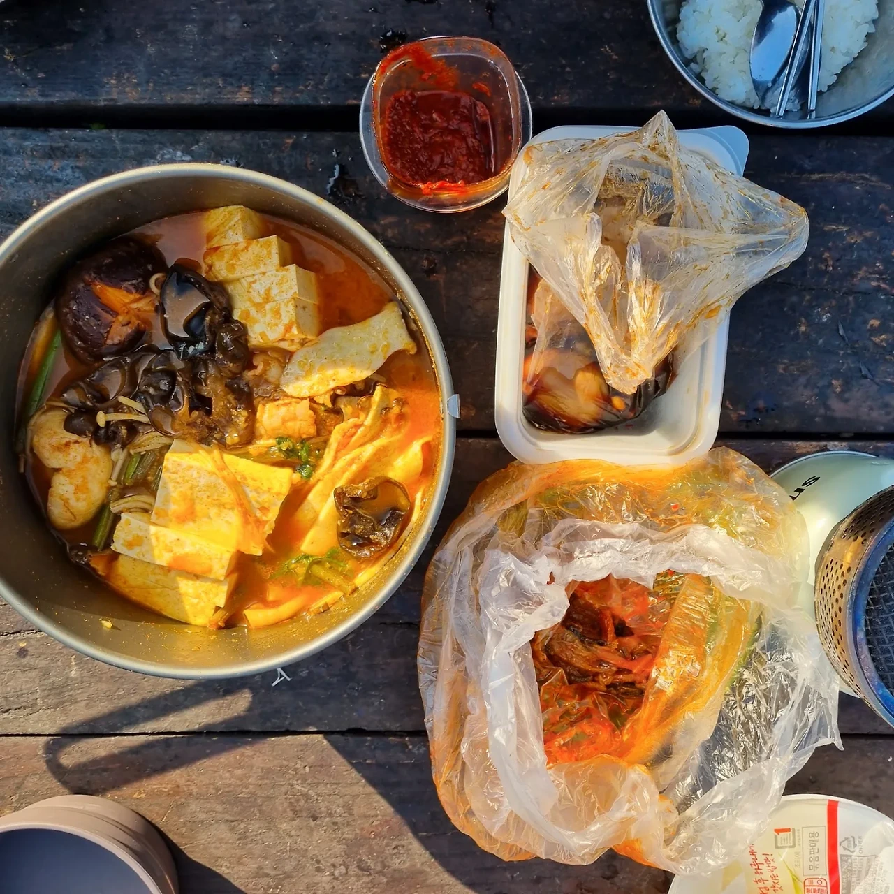 알찬 밀키트에 버섯까지 추가하고 싸온 밑반찬까지 더하니 풍성한 아침이다 (역시 먹은 만큼 배낭은 더 가벼워져 1석2조).