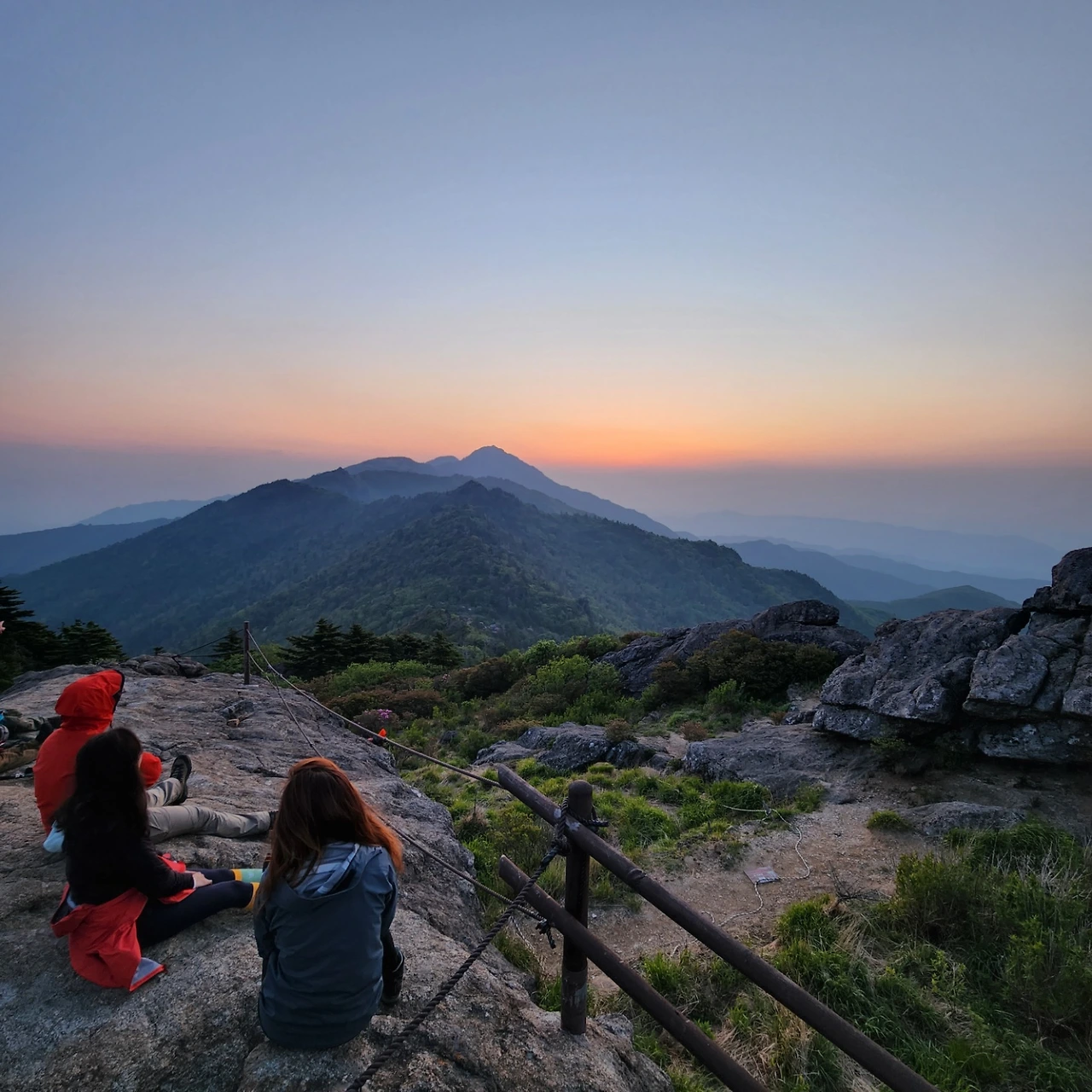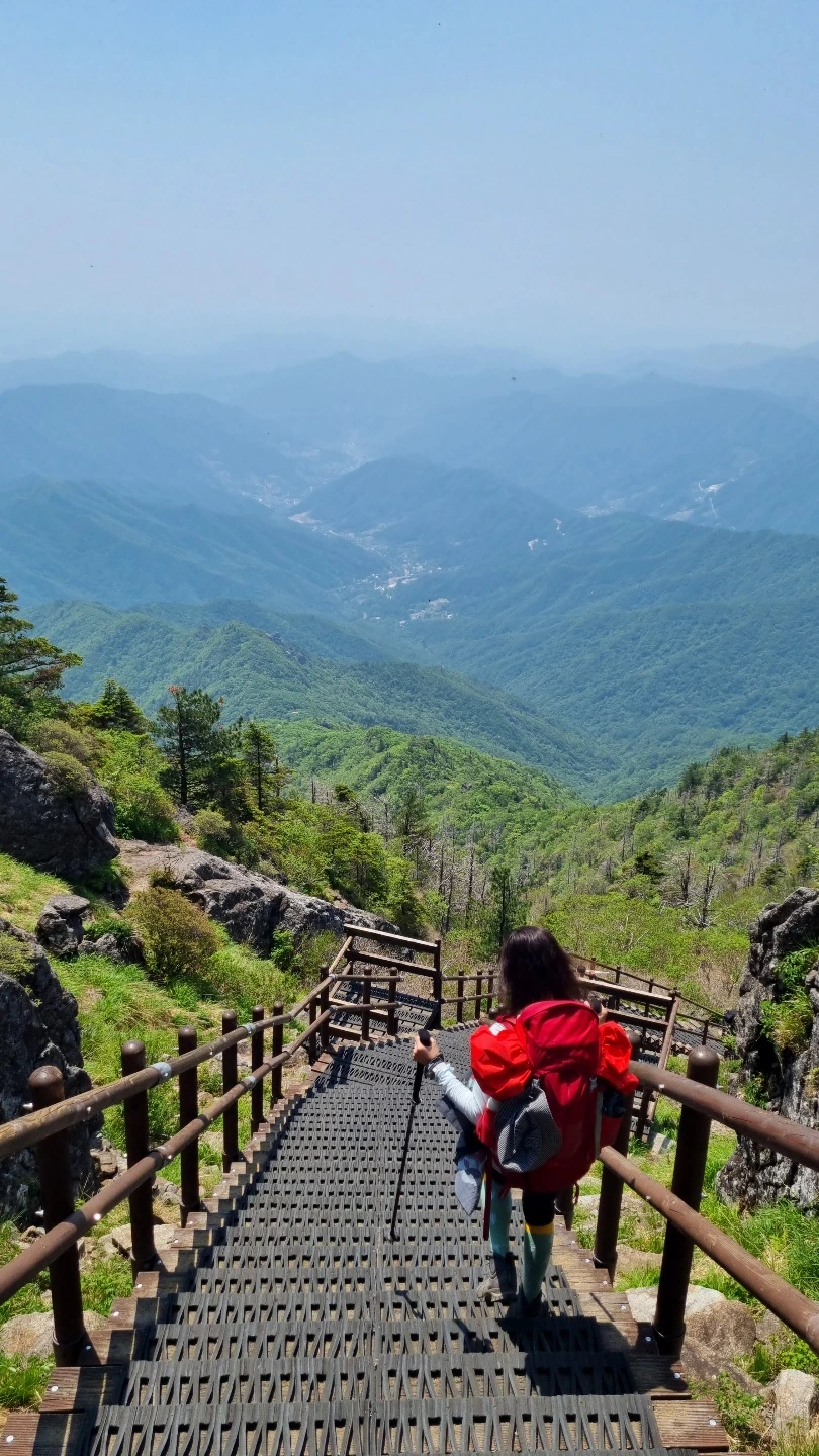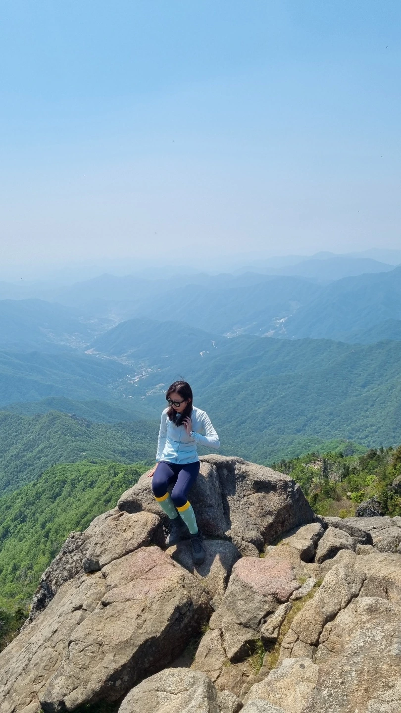 평일인데다 아직은 이른 시간이라 걱정보다 한산한 정상부에서 굽이굽이 펼쳐진 산그리메를 내려다보며 지금 이 순간만은 천하가 내 발아래 있구나 싶어지며 한껏 성취감을 만끽한다.