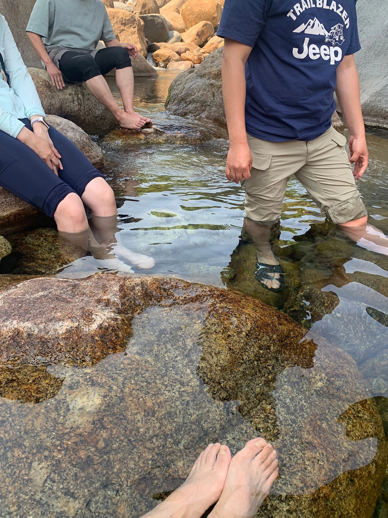 시리도록 찬 계곡물에 다리를 담그고 나니 세상 시름이 잊히는 기분이다.