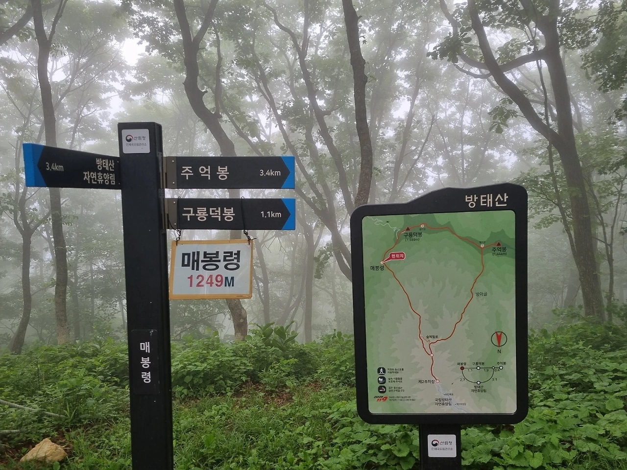 0.8km는 충분히 지난 것 같은데도 매봉령 표지는 보이지 않는데, 산 위쪽에 비가 와서 포기하고 내려오신다는 산객분들을 만나니 발걸음이 더 무거워지는 느낌이다.