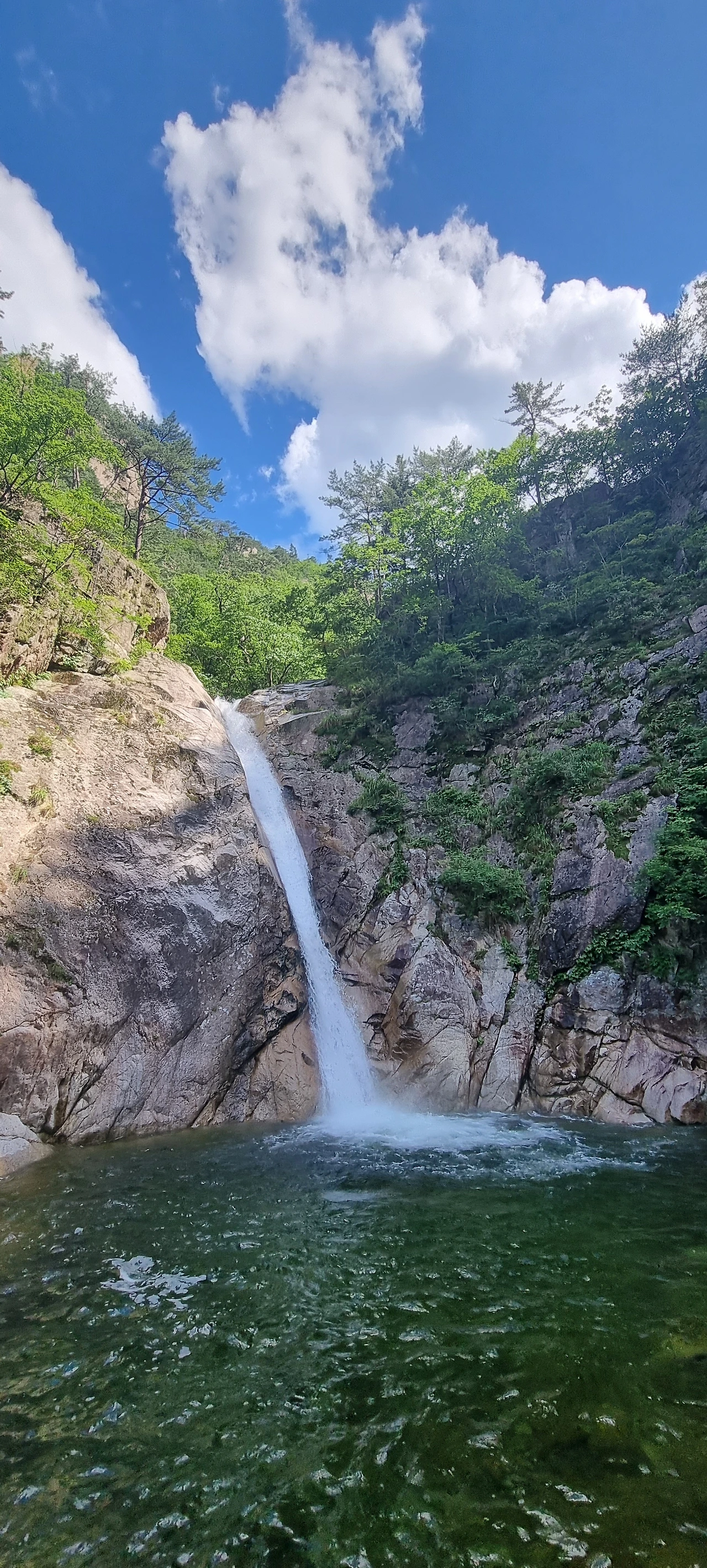 소공원 근처의 하류에는 물이 많지 않아 폭포가 어떠려나 걱정했는데 주중에 비가 많이 온 덕에 폭포수가 시원하게 떨어진다.