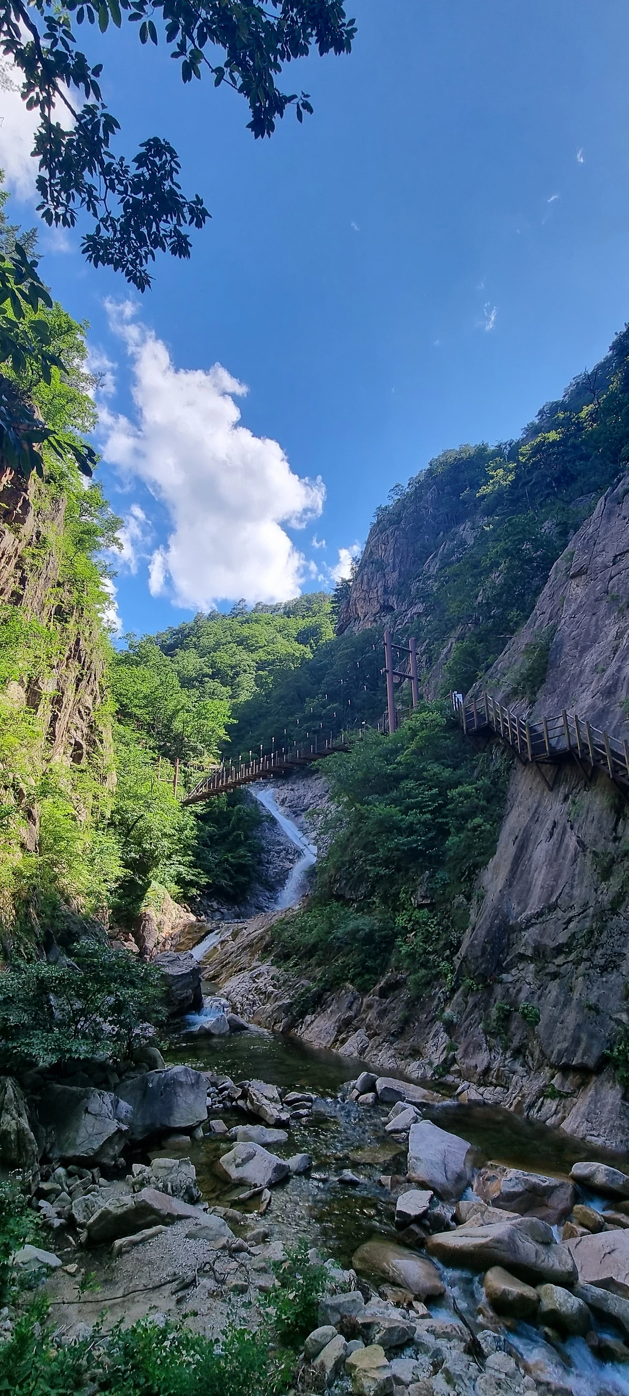 흔들다리를 건너 비룡폭포 향하는 길도 그다지 가파르지 않은 완만한 오르막이다.