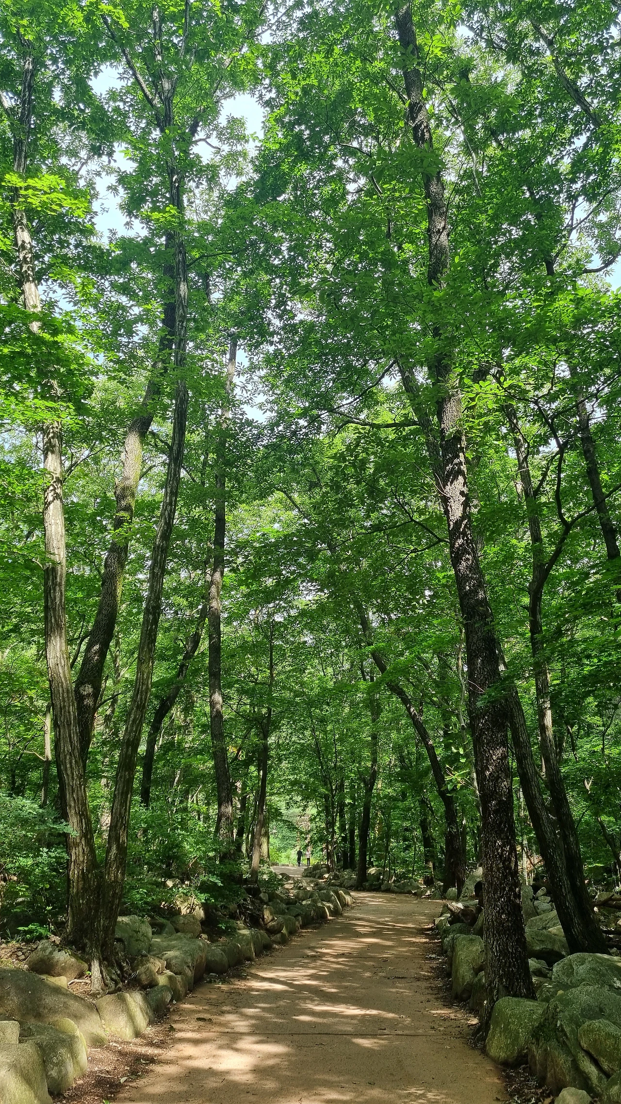 어제보다 더 뜨거워진 땡볕 아래 신흥사를 지나니 그제서야 키가 큰 나무숲이 나오고 덕분에 그늘을 걷을 수 있게 된다.