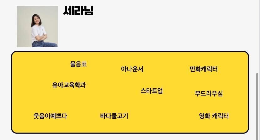 나를 표현하는 키워드로 아래와 같이 적어주었다.