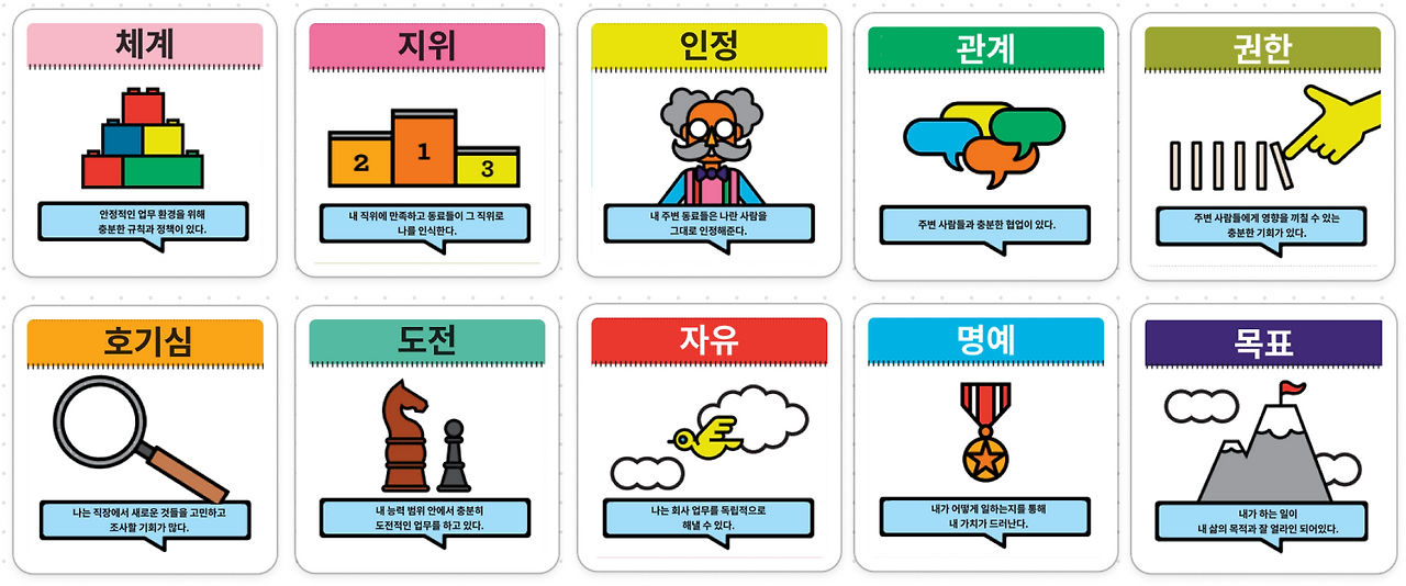 - 지위: 내 직위에 만족하고 동료들이 그 직위로 나를 인식한다.