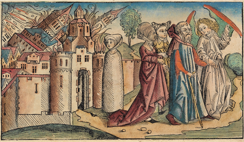 이곳 소돔에서 조카 롯이 거주하는 소돔과 고모라에서 원성이 커지고 죄악이 무거워 주님이 그곳을 쓸어버리려 하자, 아브라함은 주님의 공정하심을 내세우며 의인이 50, 45, 40.... 10명만 있어도 멸하시지 않도록 하느님을 설득했다. 아브라함처럼 롯도 그곳에 방문한 두 나그네(천사)를 극진히 대접했는데, 소돔의 모든 남자들이 몰려와 이방인에게 성적인 폭력을 가하려고 했다. 이곳 소돔에서 남색(sodomy)이라는 단어가 유래했다는 것은 잘 알려져 있다. 이방인을 지키기 위해 이상하게도 롯이 딸을 내어주려고까지 했던 것도, 다행히 천사의 도움으로 롯의 가족이 대피했지만 뒤를 돌아보지 말라는 경고를 따르지 않았던 롯의 부인이 소금기둥이 된 것도, 지금의 상식으로는 이해하기 어렵지만 롯의 두 딸이 대를 잇기 위해 아버지를 술에 취하게 해 자식을 보았다는 이야기도 성경은 기록하고 있다. 롯과 관련된 그림은 여기서 제외했지만 각각의 사건은 역사적, 문화적, 상징적 맥락에서 이해될 필요가 있다.