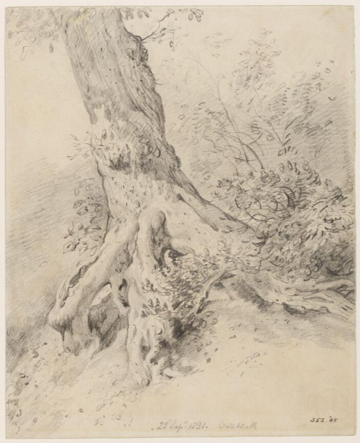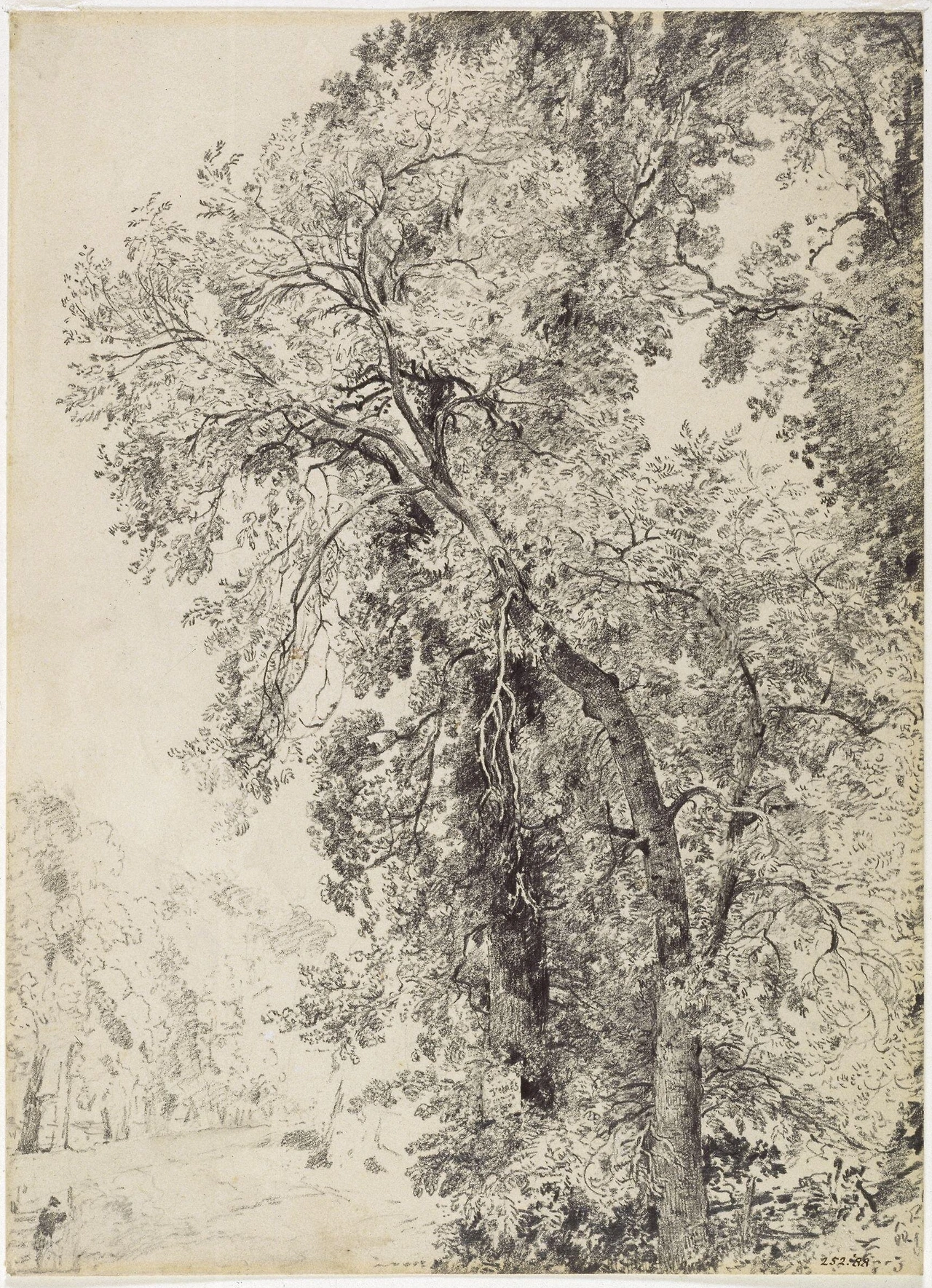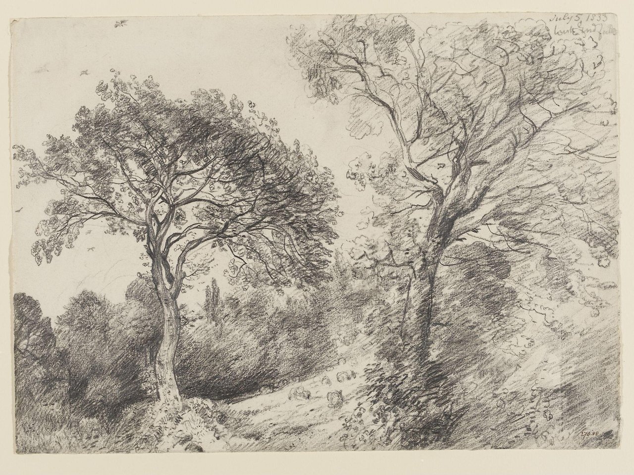 컨스터블은 나무만을 주목한 드로잉 작업도 지속했다. 화가의 친구이자 전기 작가인 레슬리(C. R. Leslie)는 ‘콘스터블이 마치 어여쁜 아이를 팔에 감싼 것처럼 기쁜 황홀감에 젖어 나무를 보고 경탄했다.’고 회상한다. 유화 스케치와 다르게 연필 드로잉은 나무의 세부까지 매우 세밀하게 묘사되었다. <큰 오크 나무>에서 단단한 몸통과 사방으로 굴곡지게 뻗어나간 나뭇가지는 강인한 생명력을 발산한다. 반면 <물푸레나무>는 기울어진 가는 몸통에 늘어진 가지와 흩날리는 입이 서정적인 분위기를 자아낸다. 영국의 시인이자 화가인 윌리엄 블레이크(William Blake, 1757~1827)는 컨스터블의 드로잉을 보고 '이것은 드로잉이 아니라 영감을 주는 것'이라며 감탄하기도 했다.