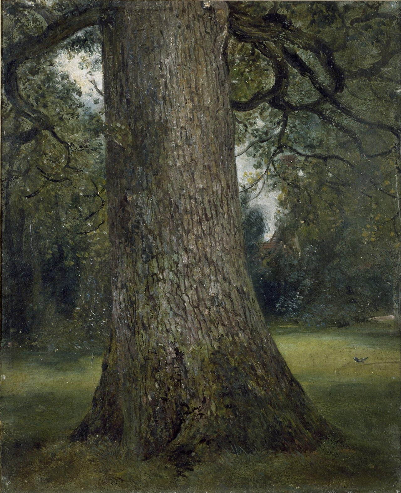 초원 중앙에 듬직한 나무의 몸통이 자리한다. 위쪽은 보이지 않지만 사방으로 뻗은 가지는 나무의 풍성한 자태를 짐작케 한다. 몸통은 주변 나무들에 비해 사실적으로 세밀하게 묘사되었는데, 특히 두꺼운 껍질과 이끼의 축축함이 느껴질 정도다. 컨스터블의 말처럼 이런 모습은 산책에서 쉽게 발견할 수 있지만, 그만큼 있는 그대로의 나무의 피부와 질감, 강한 존재감까지 생생하게 살려낸 화가는 찾기 어렵다.
